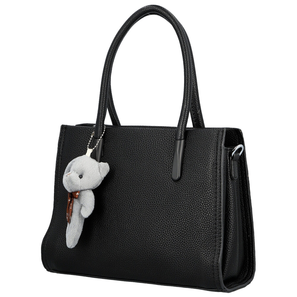 Elegantná koženková kabelka do ruky, ktorá v sebe spája čistý design a jemne hravý akcent. Štýlový plyšový medvedík na uchu dodáva kabelke originálny charakter a robí z nej neprehliadnuteľný doplnok. Zipsové uzatváranie chráni obsah kabelky a po otvorení vás poteší múdro riešený vnútorný priestor rozdelený do troch samostatných častí pre maximálnu prehľadnosť. Vnútri nechýba ani zipsové vrecko v podšívke a ďalšie praktické vrecko na zips na zadnej strane. Strieborné kovanie podčiarkuje moderný vzhľad kabelky. Vďaka odnímateľnému a nastaviteľnému popruhu ju môžete nosiť variabilne – elegantne v ruke alebo pohodlne cez rameno. Ideálna voľba pre ženy, ktoré milujú štýl s osobitým detailom. Objednajte ešte dnes a vyskúšajte, vrátiť ju môžete do 30 dní!