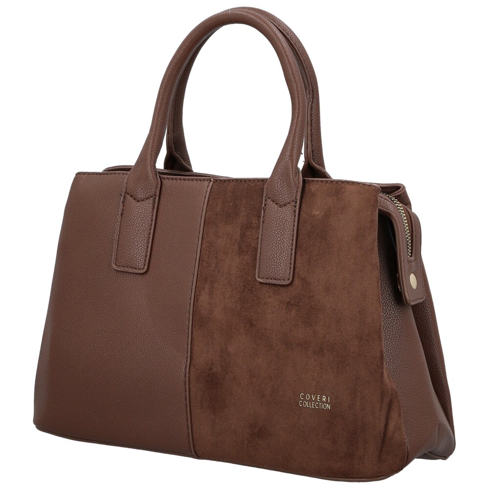 Štýlová a originálna - táto dámska kabelka do ruky kombinuje hladkú koženku s jemným semišom, rozdelenými elegantným zvislým prešitím, ktoré dodáva kabelke moderný grafický nádych. Na semišovej časti sa jemne vyníma malé logo značky. Pevné koženkové uši pohodlne padnú do ruky a prídavný koženkový popruh umožňuje nosiť kabelku aj cez rameno. Hlavné stredové vrecko na zips je doplnené dvoma postrannými vreckami na cvok, vo vnútri nájdete praktické vrecká v podšívke a zadná strana ukrýva zipsové vrecko. Zlaté kovanie podčiarkuje luxusný charakter kabelky, ktorá je ideálnou voľbou pre každú modernú ženu hľadajúcu štýl a praktickosť v jednom. Objednajte ešte dnes a vyskúšajte, vrátiť ju môžete až do 30 dní!