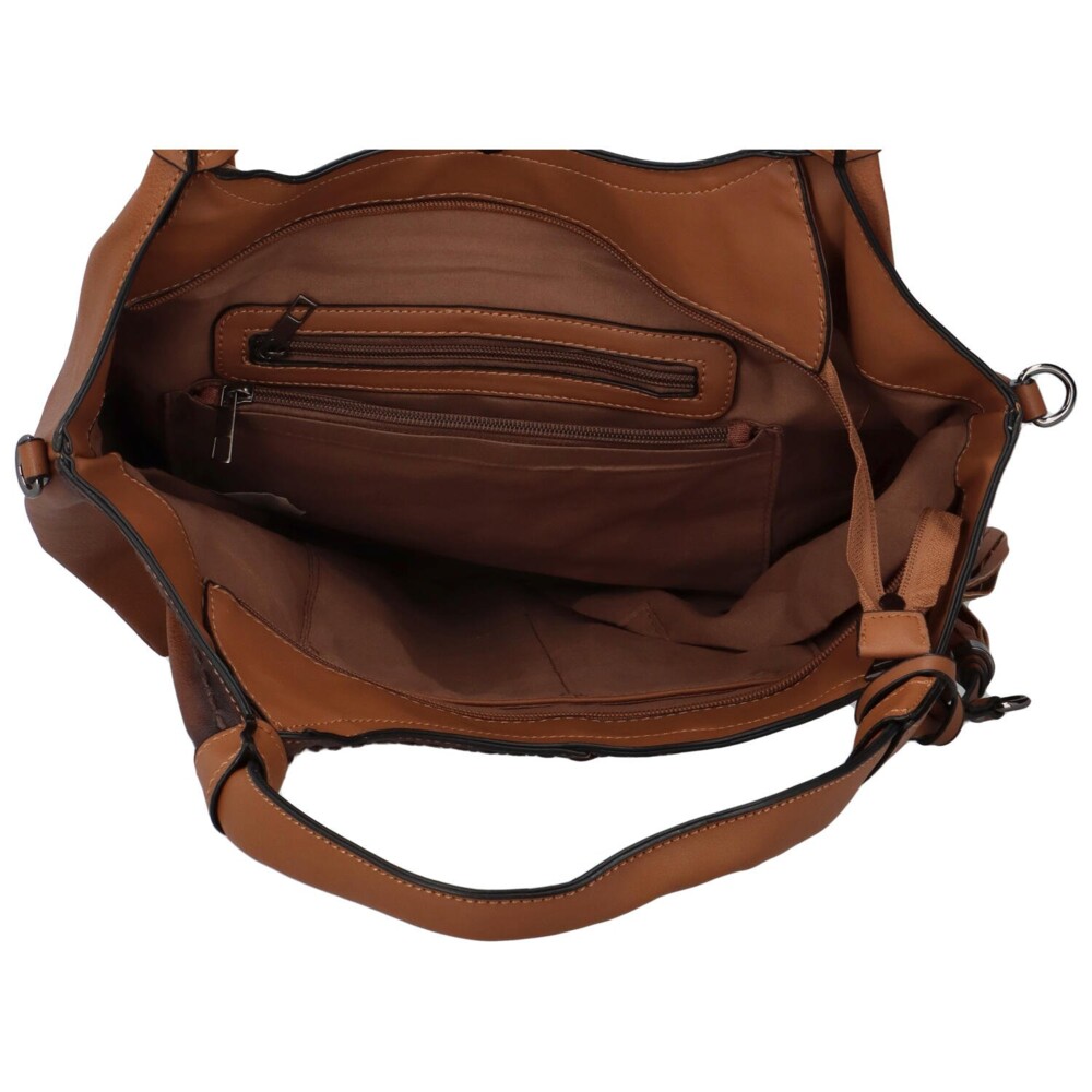 Priestranná hnedá kabelka od značky Maria C. bude vašim verným spoločníkom do práce, do školy aj do mesta. Nevšedný dizajn zaujme na prvý pohľad a zároveň ho ľahko zladíte so svojim outfitom. Príjemná koženka je doplnená vkusným vyšívaním po okrajoch a stredom prednej strany. Ako drobný módny detail sú strapce na uchu. Hlavné vrecko, ktoré je na zips, ponúka hneď niekoľko postranných priehradok. Ďalšie vrecko na zips menších rozmerov je k dispozícii na zadnej strane. Okrem pevných menších uší, kabelka ponúka aj odnímateľný, nastaviteľný popruh. Môžete ju tak nosiť do kríža, cez plece alebo v ruke, záleží len na vás, tak objednajte ešte dnes a vyskúšajte! Vrátiť ju môžete do 30 dní!