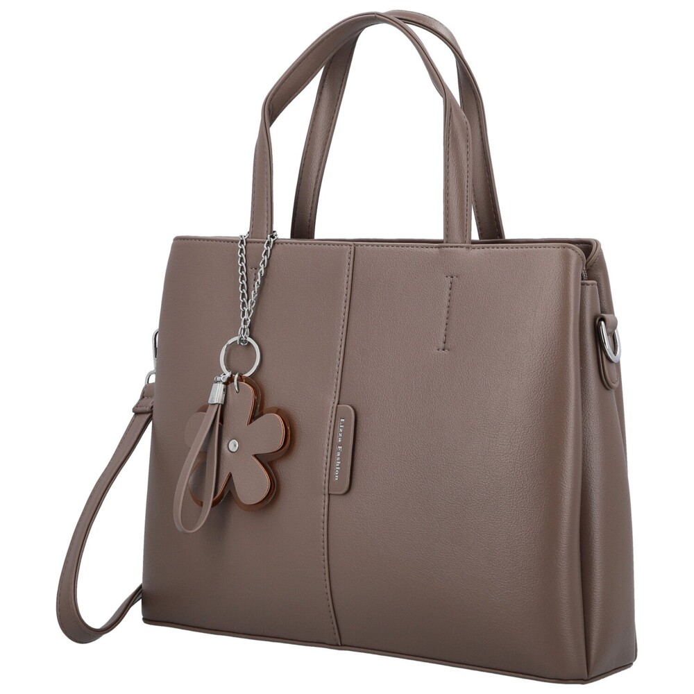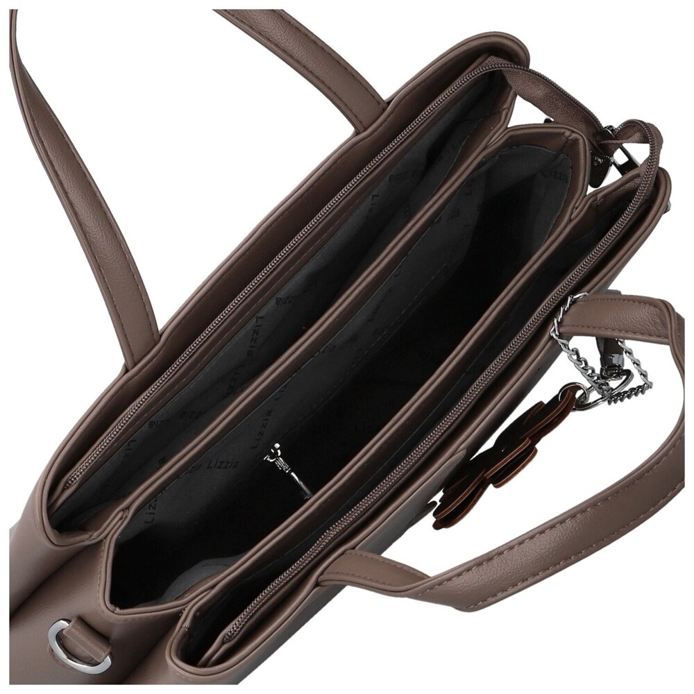 Táto dámska kabelka do ruky pôsobí sofistikovane a žensky zároveň. Prednú časť zdobí jemné logo značky a pôvabný kvetinový prívesok na striebornej retiazke, ktorý dodáva kabelke jemný dotyk luxusu. Vnútri hlavného vrecka na zips sa skrýva premyslene rozdelený priestor do troch samostatných oddielov s kapsičkami v podšívke, ideálny pre prehľadné usporiadanie drobností. Na zadnej strane nechýba praktické vrecko na zips. Kabelka má pevné uši, ktoré skvele padnú do ruky, a odnímateľný dlhý popruh pre pohodlné nosenie cez rameno. Strieborné kovanie dotvára celkový elegantný vzhľad, ktorý sa hodí ako k dennému, tak aj večernému outfitu. Objednajte ešte dnes a vyskúšajte, vrátiť ju môžete až do 30 dní!