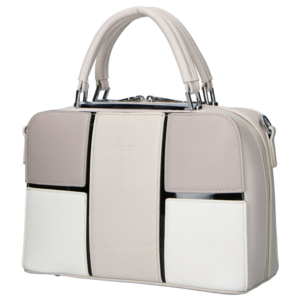 Elegantná kabelka kufríkového strihu, ktorá spája moderný design s praktickosťou. Predná strana zaujme originálnym geometrickým členením v jemných tónoch, ktoré kabelke dodáva osobitý a štýlový vzhľad. Každý detail je precízne prepracovaný, čo podčiarkuje jej sofistikovaný charakter. Na zadnej strane sa nachádza zipsové vrecko pre ľahký prístup k drobnostiam. Hlavný priestor sa uzatvára na zips a skrýva prehľadné usporiadanie s vreckami v podšívke. Pevné uši padnú akurát do ruky, zatiaľ čo odnímateľný a nastaviteľný popruh ponúka možnosť nosenia aj cez rameno. Strieborné kovanie dopĺňa celkový elegantný vzhľad tejto koženkovej kabelky, ktorá sa stane štýlovým spoločníkom na každý deň. Objednajte ešte dnes a vyskúšajte, vrátiť ju môžete až do 30 dní!
