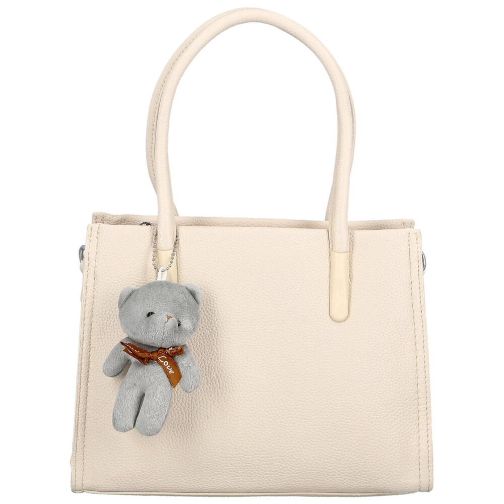 Elegantná koženková kabelka do ruky, ktorá v sebe spája čistý design a jemne hravý akcent. Štýlový plyšový medvedík na uchu dodáva kabelke originálny charakter a robí z nej neprehliadnuteľný doplnok. Zipsové uzatváranie chráni obsah kabelky a po otvorení vás poteší múdro riešený vnútorný priestor rozdelený do troch samostatných častí pre maximálnu prehľadnosť. Vnútri nechýba ani zipsové vrecko v podšívke a ďalšie praktické vrecko na zips na zadnej strane. Strieborné kovanie podčiarkuje moderný vzhľad kabelky. Vďaka odnímateľnému a nastaviteľnému popruhu ju môžete nosiť variabilne – elegantne v ruke alebo pohodlne cez rameno. Ideálna voľba pre ženy, ktoré milujú štýl s osobitým detailom. Objednajte ešte dnes a vyskúšajte, vrátiť ju môžete do 30 dní!
