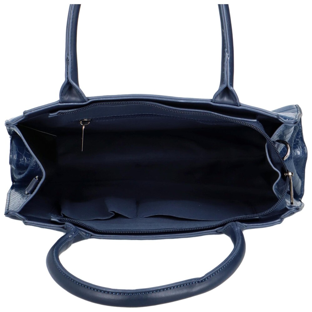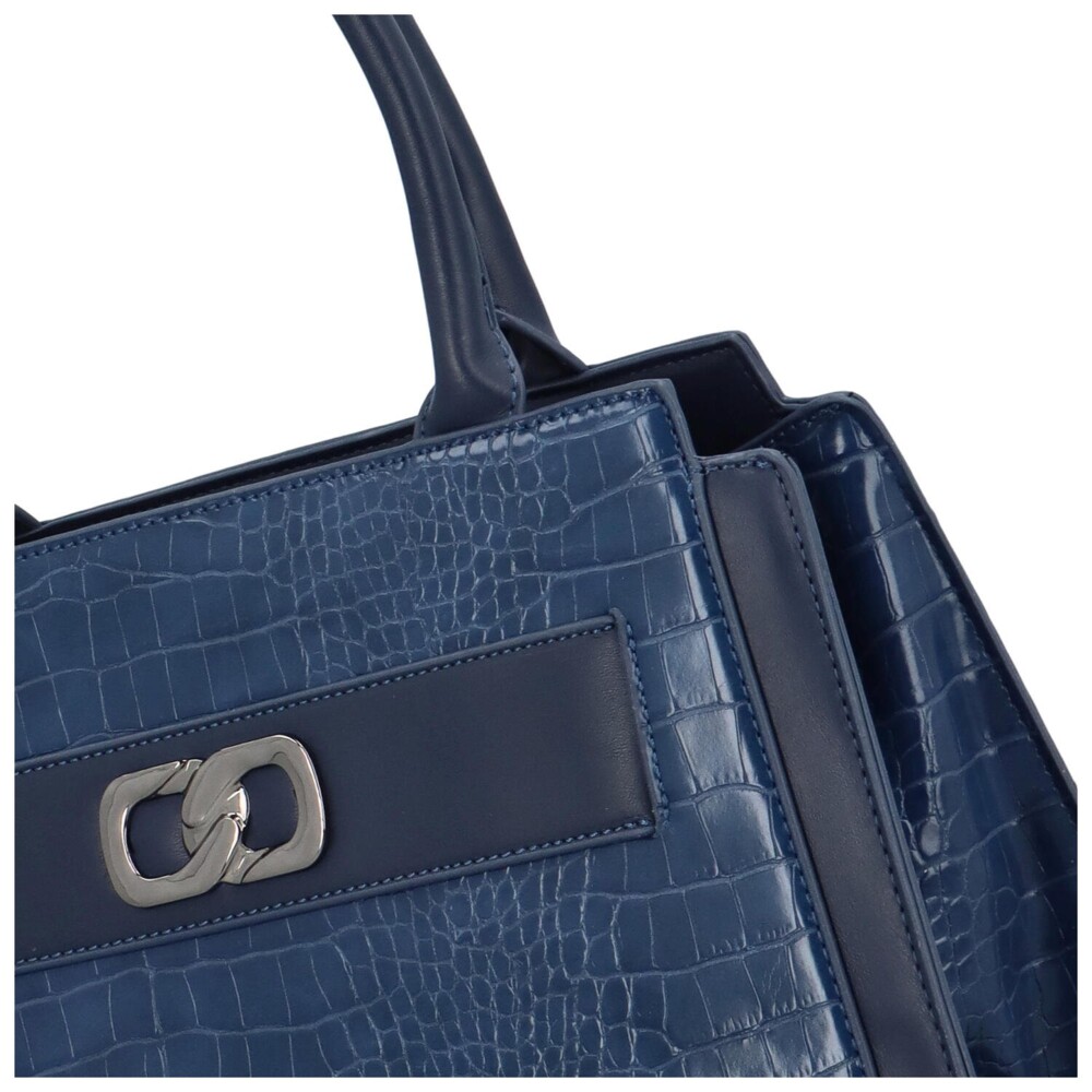 Módny kúsok od Maria C, ktorý vás očarí. Model Caliope, modrej farby, zdobí krokodílí vzor a tak vyzerá luxusne a žiadane. Má hlavné vrecko na zips a vo vnútri nájdete bočné vrecká. Vrecko na zips, pre vaše drobnosti, je aj na zadnej strane. Kabelka vyzerá božsky v ruke, ale dá sa nosiť aj cez plece vďaka prídavnému popruhu. Prednú stranu potom zdobí okrasná spona v striebornej farbe. Zvyšok kovania je tiež v striebornej farbe. Módny kúsok, ktorý si obľúbite. Tak objednajte ešte dnes a vyskúšajte! Vrátiť ju môžete do 30 dní.