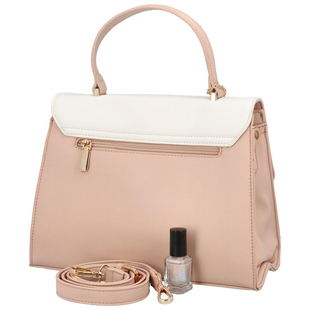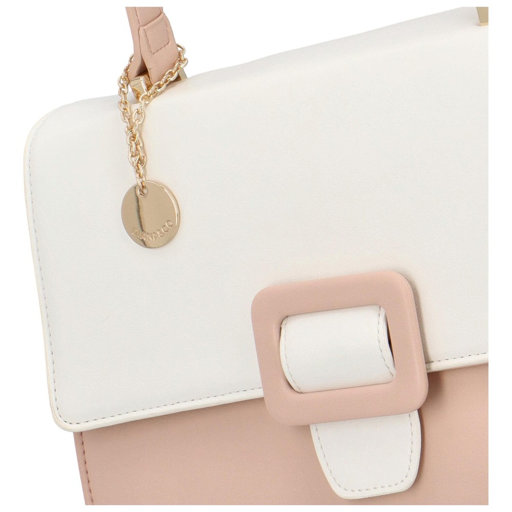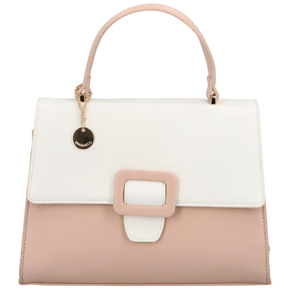 Originálna, stredne veľká, dámska kabelka, ktorú je možné nosiť za ucho v ruke, na predlaktí alebo cez zápästie a vďaka popruhu aj cez plece, od obľúbenej modernej značky DIANA & CO. Objednajte ešte dnes a vyskúšajte! Vrátiť ju môžete až za 30 dní! Dvojfarebnú kabelku môžete nosiť do mesta, na párty aj do spoločnosti. Púdrová pevná taštička s bielou chlopňou sa otvára magnetom v podobe púdrovej spony s bielym pásikom. Hlavná časť kabelky sa otvára zipsom. Nechýbajú klasické vrecká vo vnútri, ani na zadnej strane kabelky. Celkovo je kabelka pevnejšia s mäkšími bočnými stenami. Bonusom je malý kovový prívesok s logom značky.