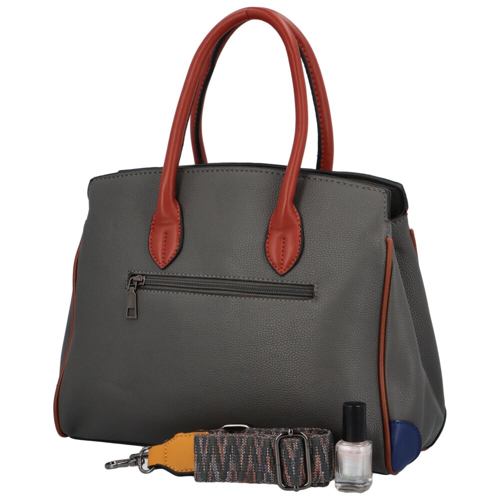 Podarená sivá kabelka v nadčasovom strihu, kde je dizajn odľahčený hravou kombináciou farieb. Príjemný kontrast skvele doplní váš šatník, kabelka pritom neprišla ani o zrnko svojej elegancie. Ideálny každodenný doplnok od značky MaxFly, ktorý nebudete chcieť odložiť. Objednajte ešte dnes a vyskúšajte! Vrátiť ju môžete do 30 dní! Pracka na prednej strane je čisto ozdobná. Hlavný úložný priestor zaistíte zipsom. Priestor je múdro, všitým vreckom, rozdelený na polovicu. Vnútri máte ďalej k dispozícii zabudované vrecko a priehradku na drobnosti. Kabelku noste v ruke, alebo na predlaktí. Súčasťou je aj pripínací popruh na nosenie cez plece.