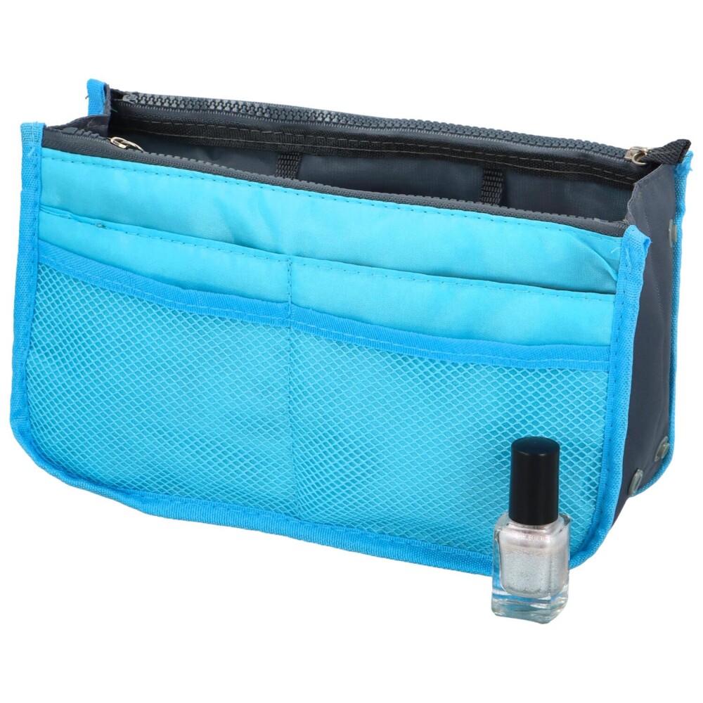 Praktická svetlomodrá kozmetická taška na cesty. Tento model s premysleným dizajnom od Delami ponúka hneď dva hlavné úložné priestory na zips a medzi nimi otvorenú priehradku. Menšie priehradky sú k dispozícii po stranách. Bez problému tak uložíte aj viac kefiek na zuby, pastu, šampón, hrebienok a ďalšie hygienické potreby. Šikovný bonus - taštička je po bokoch vybavená patentkami, ktoré ju po ich zapnutí zúžia. Tak objednajte ešte dnes a vyskúšajte! Vrátiť ju môžete do 30 dní.