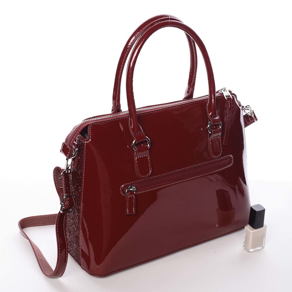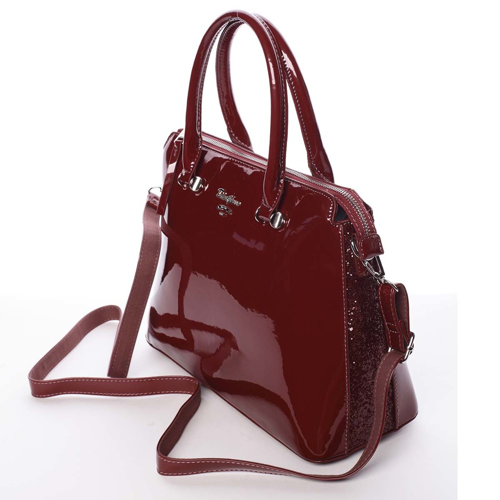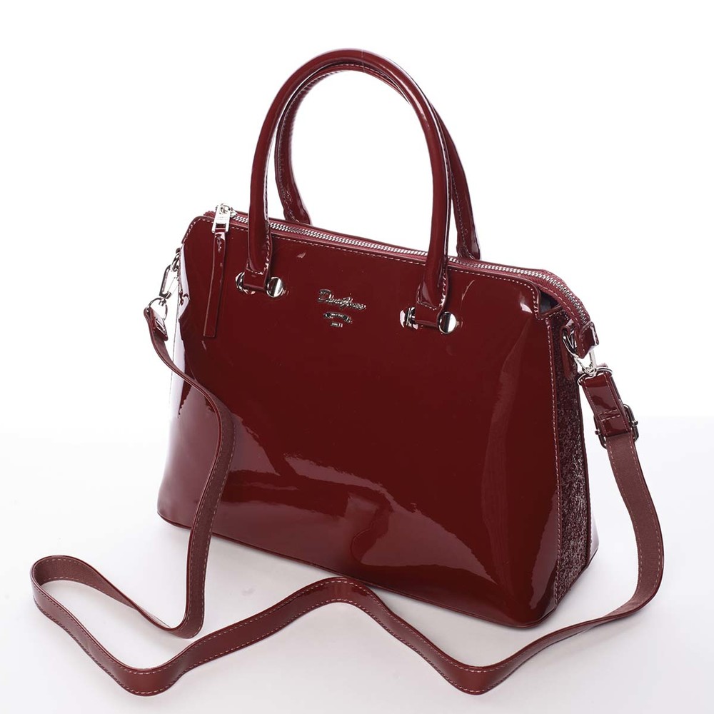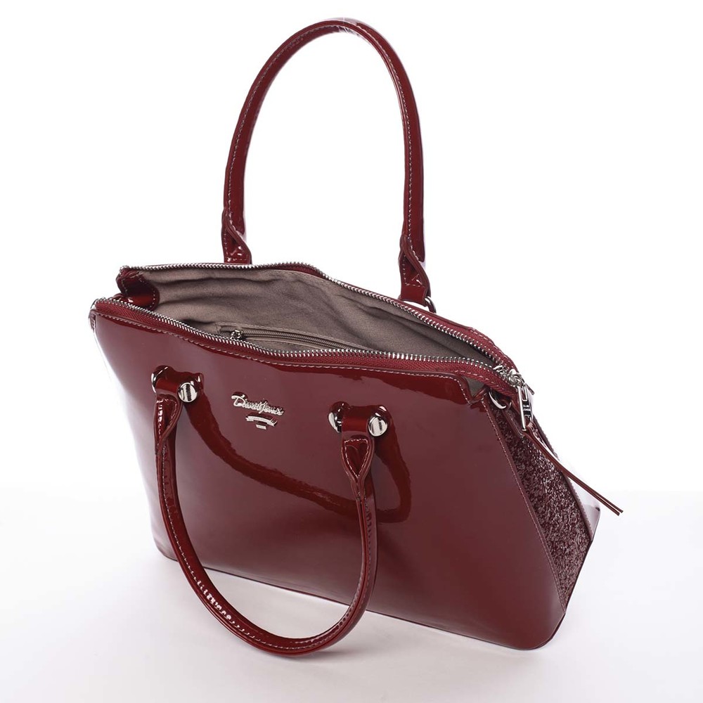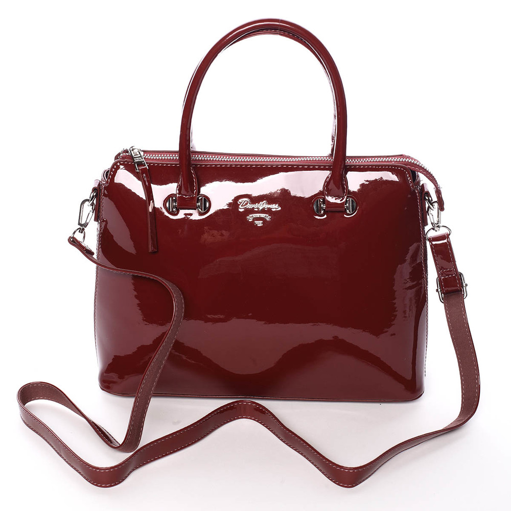Elegantní lakovaná tmavě vínová dámská kabelka - David Jones Belen
