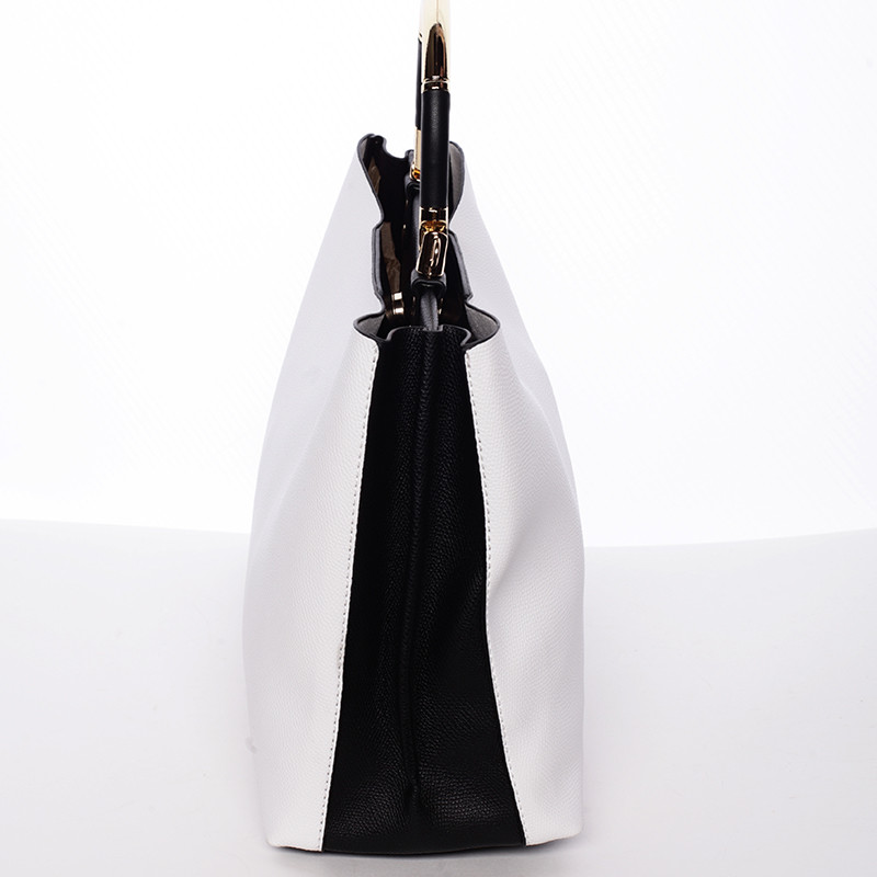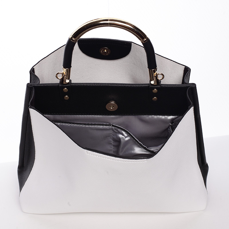 Dnešná doba praje sebavedomým a úspešným ženám. Presne pre takéto ženy je určená biela exkluzívna kabelka z dielne Tommasini. Svojim jednoduchým originálnym dizajnom a spracovaním podtrhne osobnosť každej ženy pri všetkých spoločenských udalostiach. Nesmie preto chýbať ani Vám. Hlavné vrecko je rozdelené pevnou prepážkou na dve časti, ktoré sa zatvárajú na magnetický cvoček. Kabelka je mäkká, s pevným dnom, chráneným cvočkami proti poškriabaniu. Kabelka má odnímateľný a nastaviteľný popruh, takže ju možno nosiť aj cez rameno. Má pevné ucho, ku ktorému možno pripojiť popruh. Materiál, z ktorého je kabelka zhotovená je vode odolný. Novinka. Objednajte ešte dnes a vyskúšajte, vrátiť ju môžete až za 30 dní!