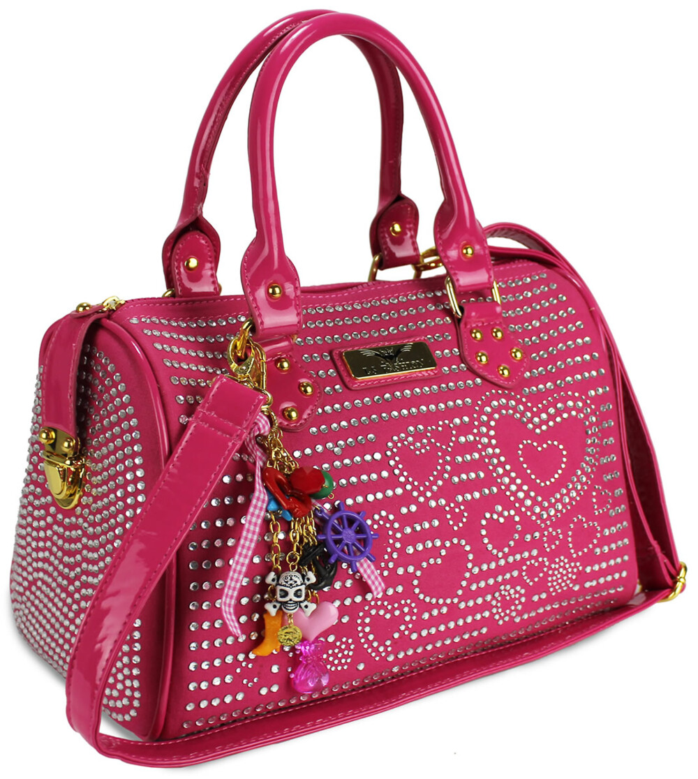 Kabelka L & S fashion v ružovom prevedení posiata kamienkami a na zips. Vnútri - vrecko na zips a dve vrecká bez zipsu. Nastaviteľný popruh.