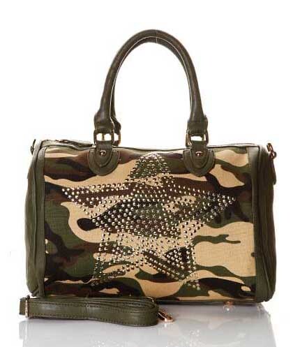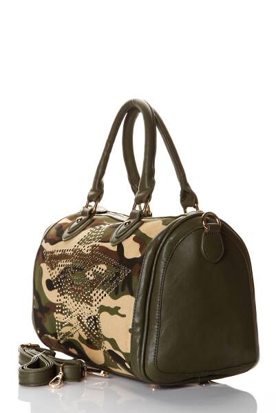 Zelená ARMY kabelka Military v štýle London Fashion na zips s kamienkovou hviezdou na prednej strane. Vnútri vrecko so zipsom a dve bez zipsu. Nastaviteľný popruh.