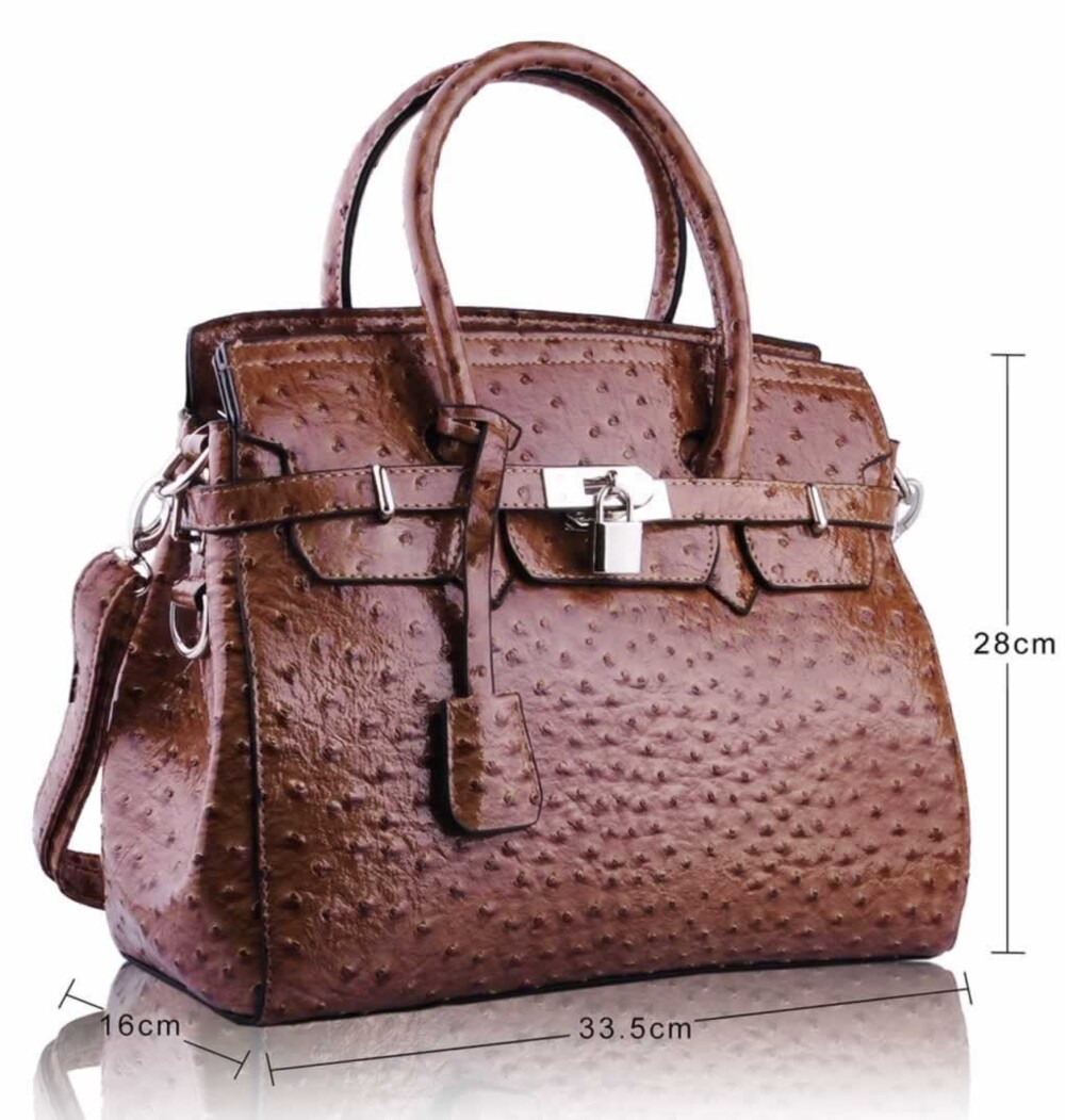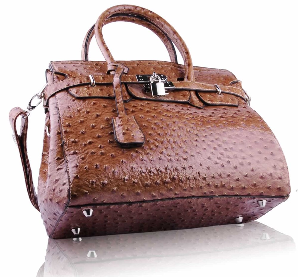 Luxusná štýlová kabelka L&S Fashion v lesklom prevedení v štýle Birkin (Hérmes), so zámkom. Vnútri - vrecko na zips a dve bez zipsu. Nastaviteľný popruh. Materiál technická koža.