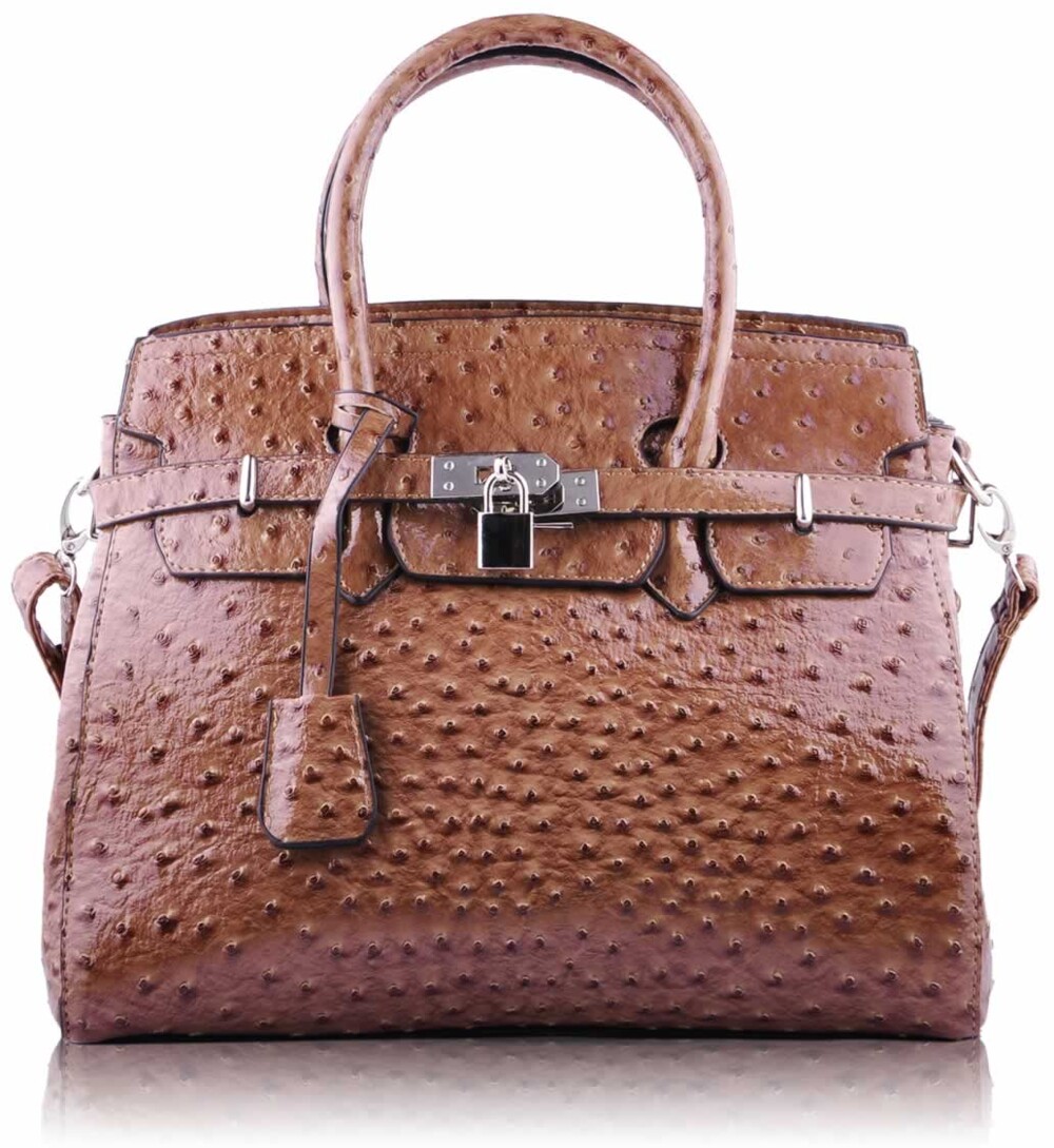 Kabelka s imitáciou pštrosej kože LS Fashion LS00140A vo farbe nude