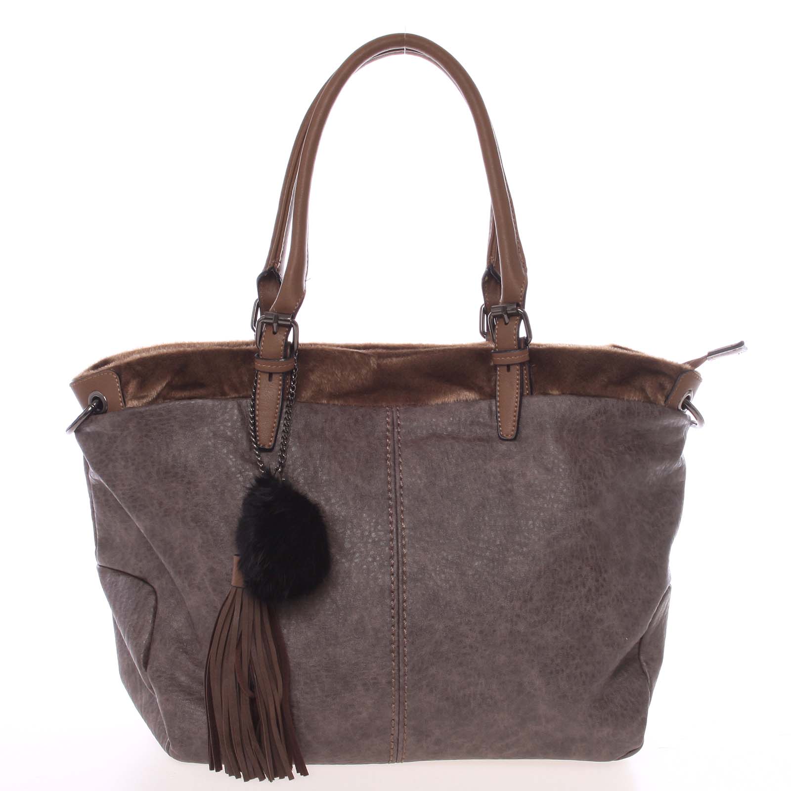 Pokiaľ ešte stále hľadáte kabelku k všednému outfitu, zaobstarajte si model Paige od MARIA C. Táto taupe kabelka je navrhnutá podľa posledných módnych trendov a snúbi sa v nej elegancia a jednoduchosť. Pri ceste do práce, na rande, či do školy Vám bude slúžiť ako praktický módny doplnok. Je mäkká, strednej veľkosti s pevným dnom. Vrchný lem kabelky je v imitácii kožušiny, čo dodáva kabelke na originalite a elegancii. Vnútri kabelky je priestorná hlavná kapsa rozdelená kapsou na zips a obšitá menšími kapsičkami na drobnosti. Poteší tiež kapsa na zadnej strane kabelky, kam sa dajú uložiť všetky potrebné veci, ktoré chcete mať po ruke. Nosiť sa dá v ruke, na predlaktí alebo cez rameno. Má odnímateľný a nastaviteľný popruh. Oživením dizajnu je odnímateľný prívesok brmbolcov a strapcov. Objednajte ešte dnes a vyskúšajte, vrátiť ju môžete až do 30 dní!