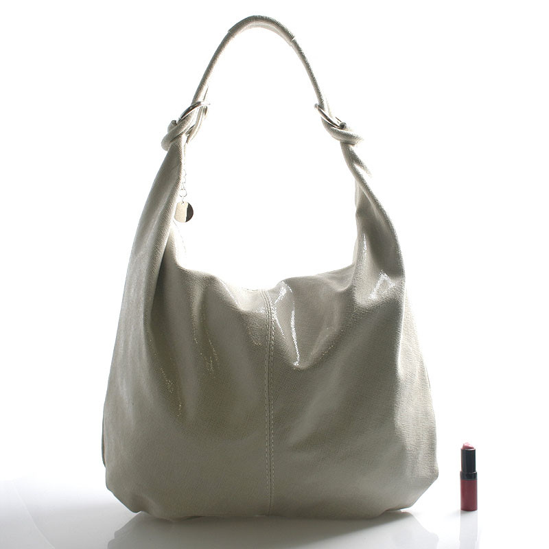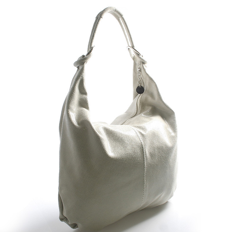 Béžová elegantne športová lesklá kožená kabelka ItalY . Mäkká koža v tvare vaku sa ľahko prispôsobí vášmu noseniu. Kabelka pojme všetky každodenné potrebné veci a zostane miesto aj na malý nákup. Hodí sa ku všetkým typom oblečenia. Zapína sa zipsom cez celú dĺžku, vo vnútri je jedno postranné vrecko na zips. Novinka. Objednajte ešte dnes a vyskúšajte, vrátiť ju môžete až do 30 dní!