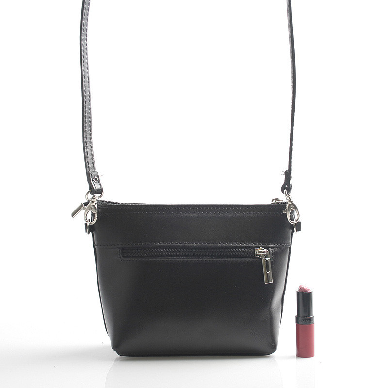 Menšia, kožená crossbody kabelka ItalY, v čiernej farbe. Elegantný kúsok k ležérnemu dámskemu outfitu, ale aj do spoločnosti. Potrebujete kabelku do mesta, divadla alebo na párty? Garnet skvele doplní Váš štýl. Menšia crossbody kabelka s kapsičkami vnútri a zvonku. Novinka. Objednajte ešte dnes a vyskúšajte, vrátiť ju môžete až do 30 dní!