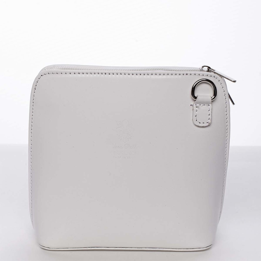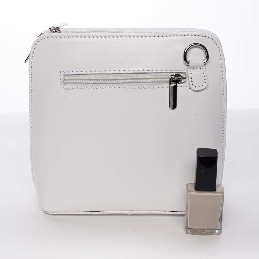 Elegantná biela kožená crossbody kabelka ItalY do mesta, na prechádzku, na párty, do kaviarne ... Zapína sa zipsom až ku dnu. Vnútri je rozdelená vreckom na zips, okrem neho má ešte jedno vrecko na zips. Zozadu je tiež vrecko na zips. Súčasťou je kožený remienok. Vyrobená v Taliansku a je to poriadny BESTSELLER. Novinka. Objednajte ešte dnes a vyskúšajte, vrátiť ju môžete až do 30 dní!