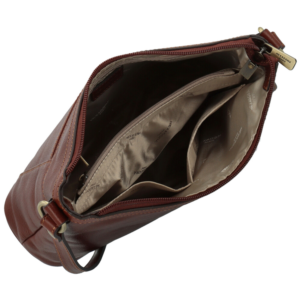 Dámska kožená crossbody kabelka hnedá - Hexagona Karmen