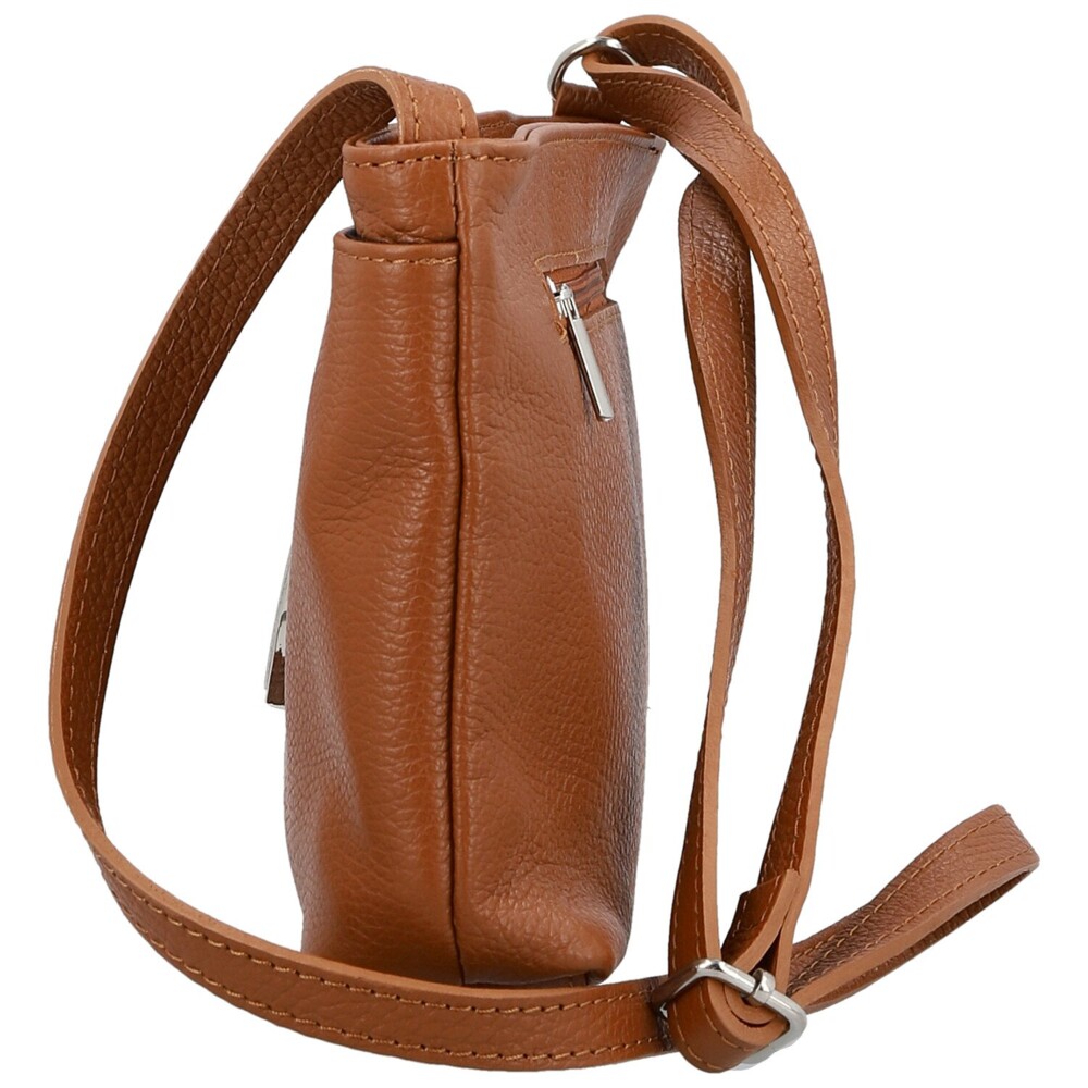 Dámska kožená crossbody kabelka koňaková - Delami Vera Pelle Finni