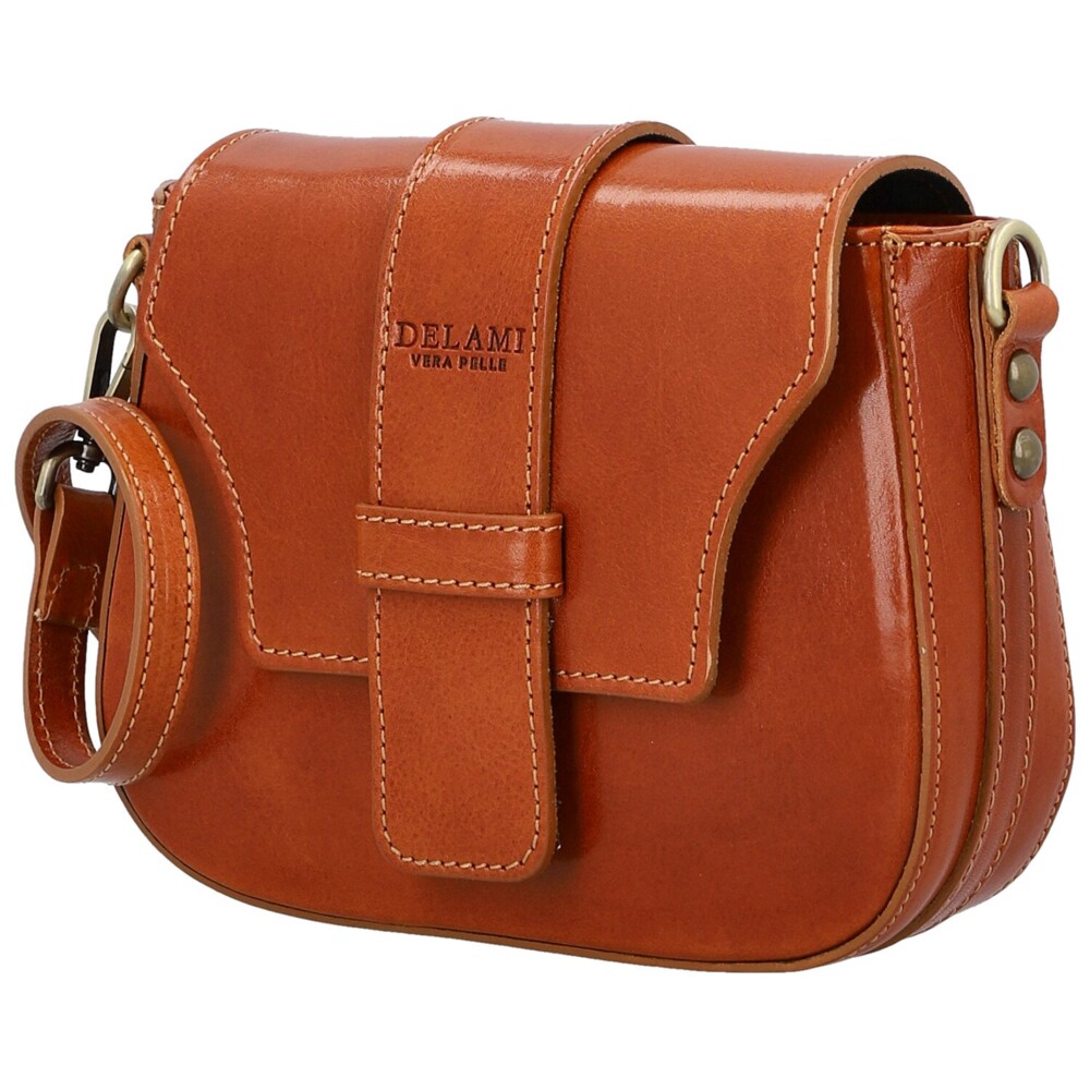 Dámska kožená crossbody kabelka koňaková - Delami Vera Pelle Lajla