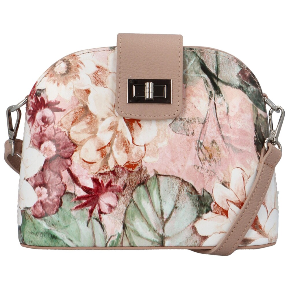 Dámská kožená crossbody kabelka starorůžová/květy - Delami Brokyllon