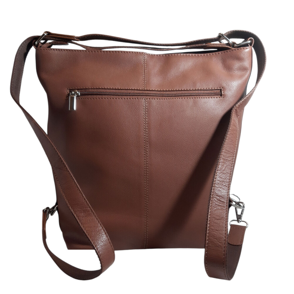 Nové kožené kabelky a batôžky pre ženy od značky SendiDesign . Objednajte ešte dnes a vyskúšajte, vrátiť ju môžete až za 30 dní! Koňaková menšia dámska kabelka z hovädzej kože. Kabelku noste cez rameno alebo ako batoh! Má hlavné vrecko na zips. Ide o mäkký typ kabelky s dlhými ušami/popruhmi a celkom hlbokým dnom. Model je dizajnovo jednoduchý a pritom veľmi príťažlivý. Pojme všetky osobné veci ako sú doklady, peňaženka, diár, okuliare, šatka, telefón a kozmetika. Samozrejmosťou sú tri menšie vrecká a priehradky na drobnosti. Kabelka, ktorá vám bude dobre slúžiť každý deň. :)