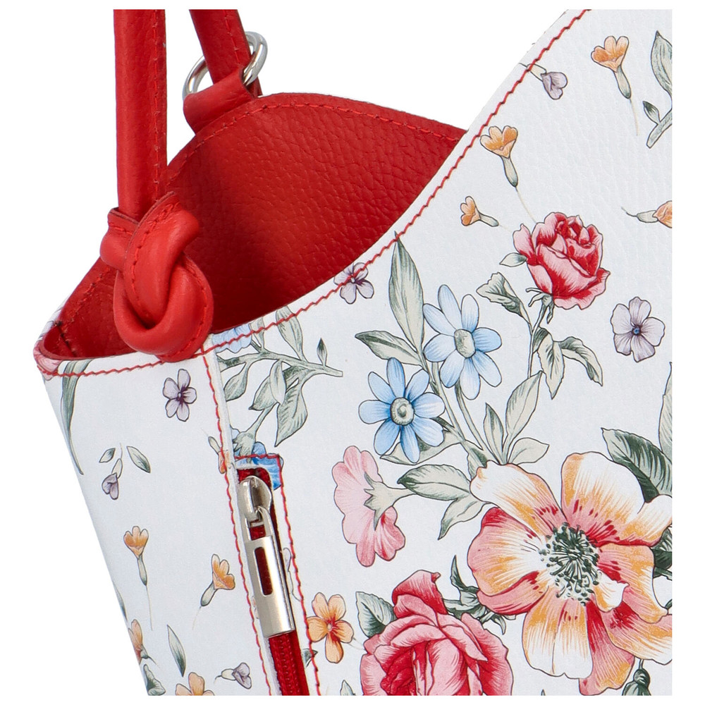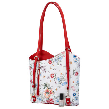 Doprajte si kvalitnú dámsku koženú kabelku, značky ItalY, ktorú možno nosiť aj v podobe batohu. Kto by nechcel kabelku ako batôžtek, vyrobenú priamo v Taliansku z pravej talianskej kože! Tento model má pestrý kvetinový vzor, ktorý je na jar a letné mesiace ako stvorený!. Objednajte ešte dnes a vyskúšajte, vrátiť ju môžete až za 30 dní! Na prednej strane sú zvislé vrecká so zipsom, rovnakú kapsu nájdete aj na zadnej strane. Hlavné vrecko má zips a ponúka dostatočný priestor na osobné veci i kapsičku so zipsom na drobnosti. Potlače na kabelkách sú jedinečné, môžu sa teda v detailoch líšiť.