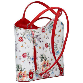 Dámska kožená kabelka batôžtek kvetinová červená - ItalY Larry New