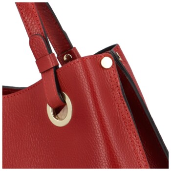 Ak zháňate luxusnú kabelku do mesta i do spoločnosti, potom vám nesmie uniknúť táto krásna kožená kabelka do ruky aj cez plece, od značky Delami! Kabelka má červenú farbu, je stredne veľká a pevnejšia s mäkšími stenami. Spodná strana je vybavená kovovými cvočkami, čo jej dodáva stabilitu a pri odkladaní sa nezašpiní. Ponúkne vám skvelý priestor pre osobné či ďalšie veci a doplnky. Hlavné vrecko sa otvára zipsom a po stranách sú vrecká na magnet. Objednajte ešte dnes a vyskúšajte! Vrátiť ju môžete až za 30 dní!