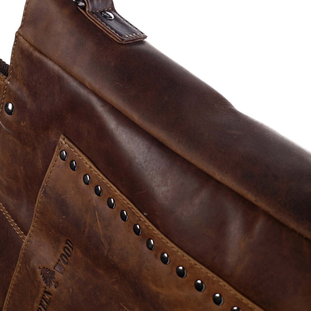 Praktická kožená kabelka cez plece s patinou od značky Greenwood bola vyrobená na mieru pre ženy, ktoré hľadajú originalitu so štýlom a kvalitou. Taška je mäkká s mierne pevnejším dnom, celkom slušne drží svoj tvat, hodiť sa Vám bude na cestách do práce aj na nákupoch v meste. Predná strana kabelky Vás upúta kovovými cvočkami, ktoré lemujú prednú kapsu s magnetickým nitom, tu si uložíte drobnosti, ktoré treba mať stále po ruke, obrúsky, vreckovky alebo dezinfekčný gél. Chýbať Vám nebude ani vrecko so zipsom na zadnej strane kabelky. Nosiť ju môžete cez plece, má dlhé uši, ale využiť možno aj popruh, ktorý je odnímateľný a dá sa nastaviť. Hlavné vrecko so rozopína zipsom. Drobnosti, telefón a cennosti si uložíte v bočných vrecúškach. Všetky produkty z brúsenej kože je potrebné impregnovať a mazať, vydržia Vám oveľa dlhšie. Drobné škrabance a odreniny nie sú chybou kože, časom a používaním získajú svoj individuálny charakter a patinu. Túto kabelku si rozhodne obľúbite!