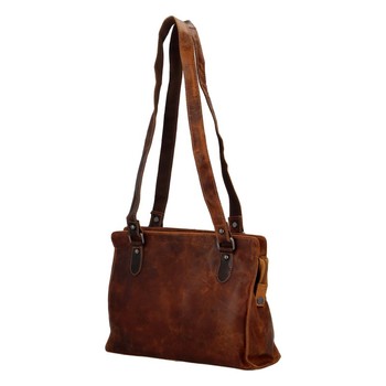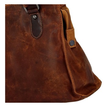 Prírodná, svetlohnedá, luxusná, kožená kabelka cez plece s patinou od značky Greenwood je vyrobená na mieru pre ženy, ktoré ladia eleganciu so štýlom a kvalitou. Taška je pevnejšia s mäkšími bočnými stenami. Hodiť sa vám bude do mesta, ale aj do práce na malý notebook (20 x 27 cm) a osobné veci. Nosiť ju možno iba cez plece, popruhy sú kožené, podšité látkou. Hlavné vrecko sa otvára zipsom. Hlavný priestor sa delí na dva prepážkou vo forme vrecka so zipsom. Ďalšie kapsičky využijete na telefón, kľúče a drobnosti. Kabelke nechýba ani vrecko so zipsom na zadnej strane. Drobné škrabance nie sú chybou kože, časom a používaním získajú svoj individuálny charakter a patinu.