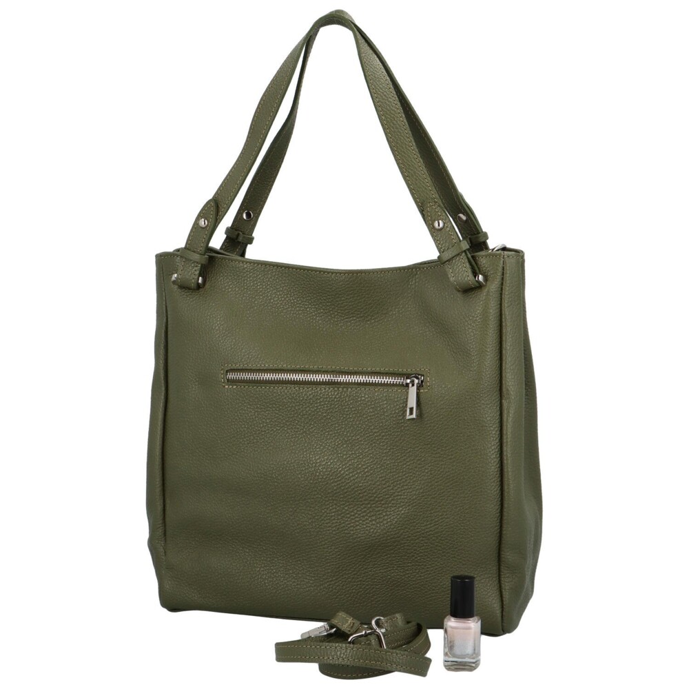 Elegantná, zelená, kožená kabelka cez plece, od značky ItalY. Zaobstarajte si mäkkú kabelku do mesta alebo do práce. Módny kúsok, ktorý vás nadchne. Spodná časť kabelky je pevnejšia, disponuje kovovými sponami aj odnímateľným popruhom. Hlavné vrecko sa otvára zipsom, ďalšie vrecko na zips je na zadnej strane a tiež vo vnútri kabelky. Delí hlavný priestor kabelky. Novinka! Objednajte ešte dnes a vyskúšajte! Vrátiť ju môžete až za 30 dní!