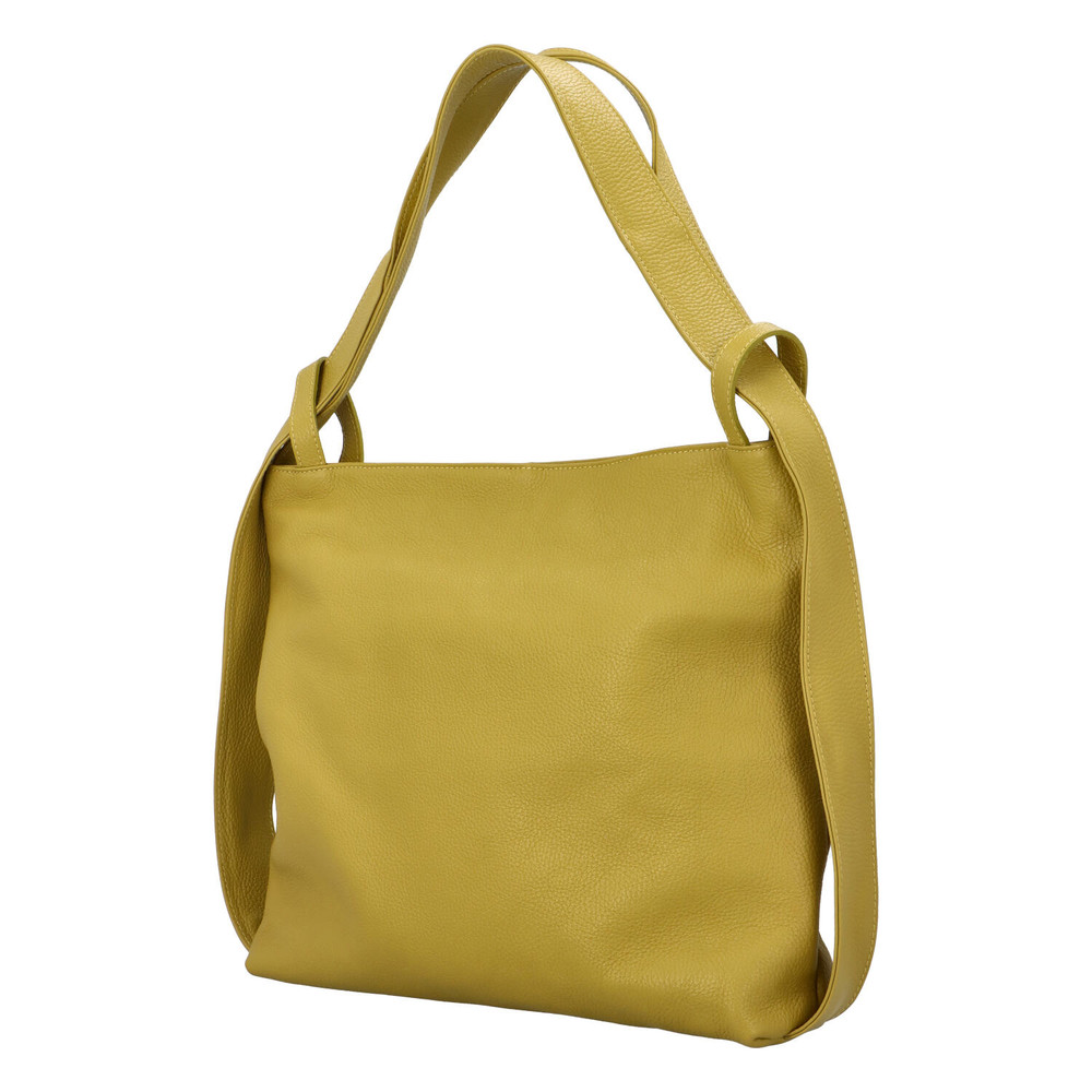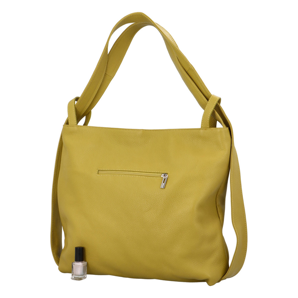 Už poznáte kožené produkty značky ItalY? Skvelý kvalitný tovar, ktorý máte teraz na dosah ruky. Objednajte ešte dnes a vyskúšajte! Vrátiť ju môžete až za 30 dní! Veľká elegantná kabelka cez plece je jednou z módnych krások, ktoré vám môžeme ponúknuť. Má bledú, pistáciovo zelenožltú farbu, je mäkká a jej vzor je vráskavý. Uši sú spojené s kabelkou akoby do popruhov, nosiť ju môžete aj ako batoh. Hlavný priestor sa otvára zipsom, delí ho látkové vrecko so zipsom. Každá vec tak má svoje miesto. Telefón a drobnosti si uložíte do dvoch voľných kapsičiek alebo do kapsičky so zipsom. Aj na zadnej strane kabelky je vrecko so zipsom.