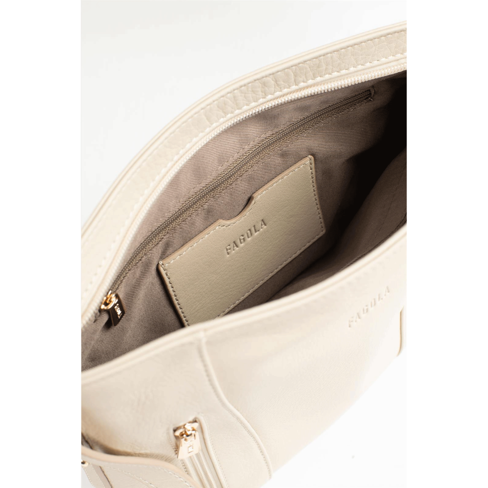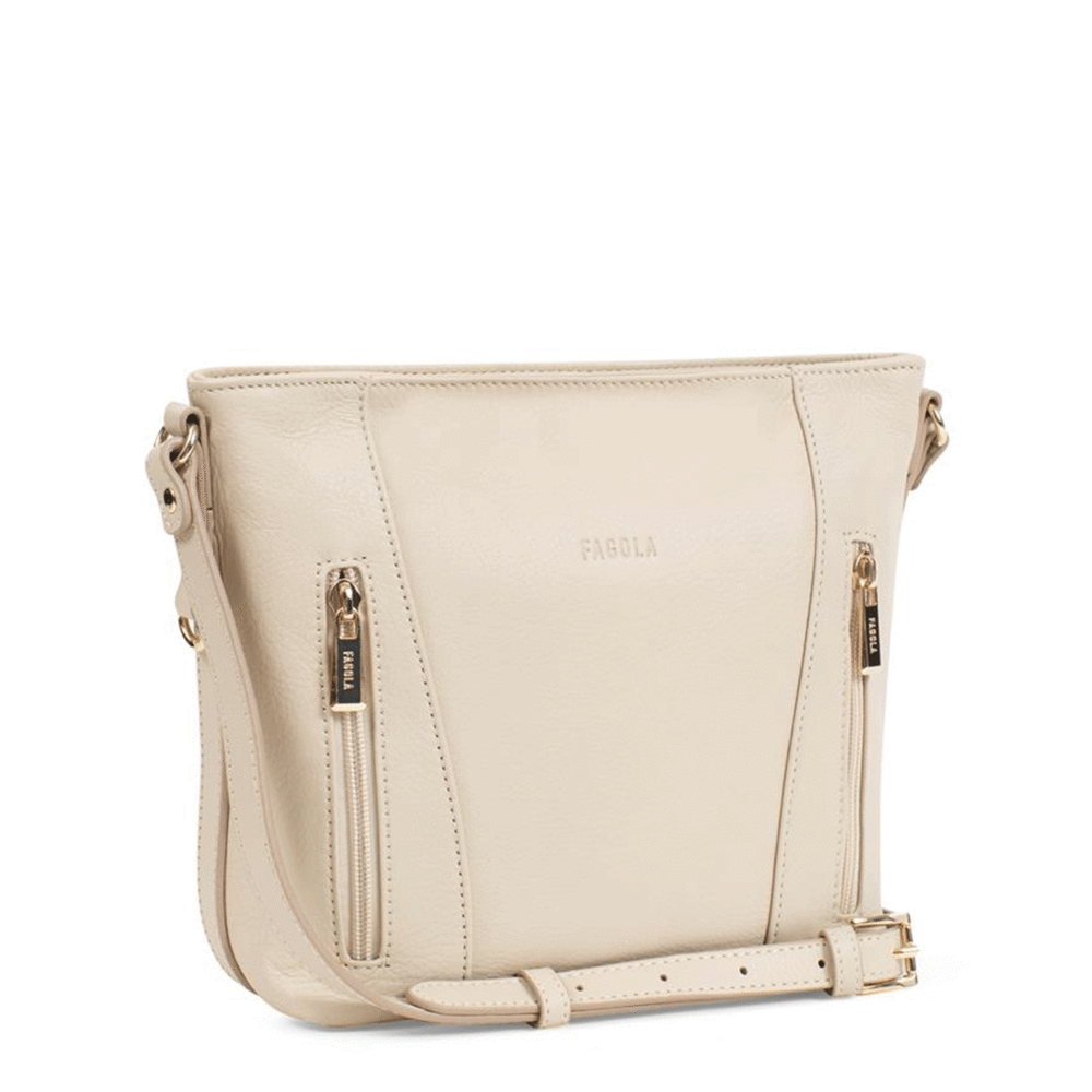 Dámska kožená kabelka cez rameno béžová - Fagola Preira