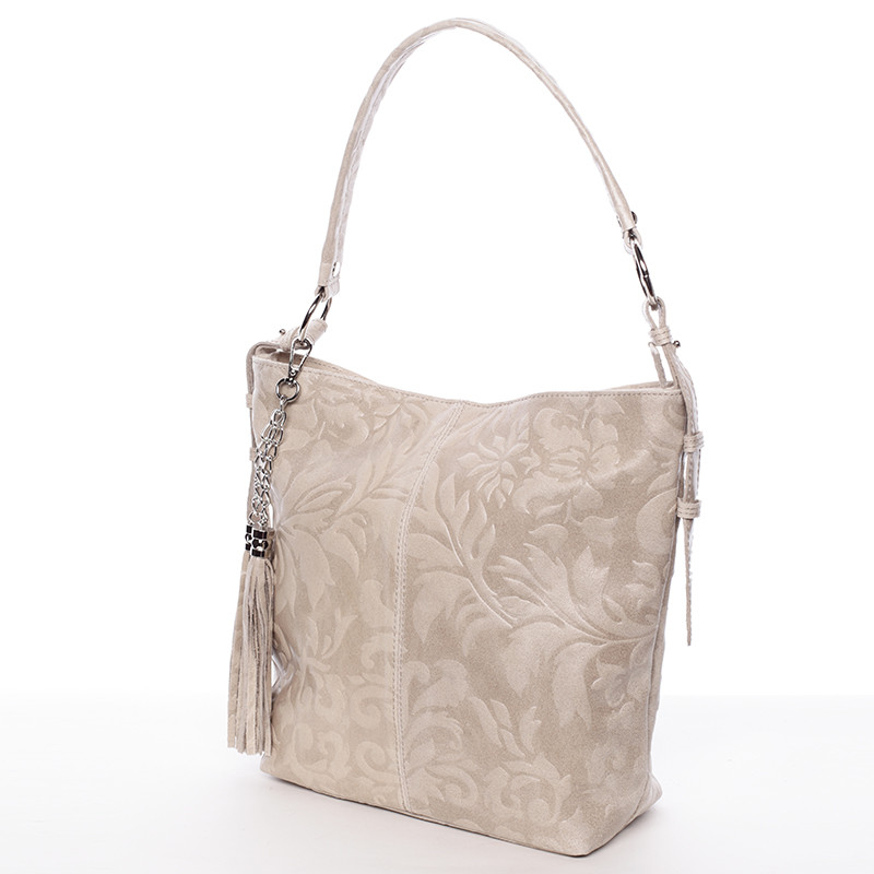 Dámska kožená kabelka cez rameno béžová - ItalY Heather