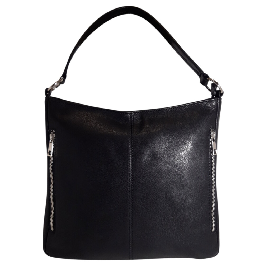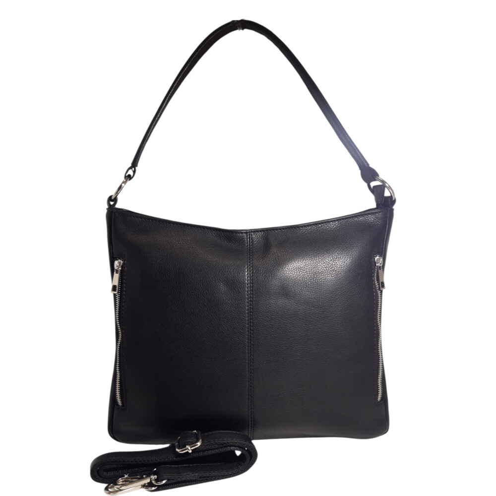 Nové kožené kabelky pre ženy od značky SendiDesign . Objednajte ešte dnes a vyskúšajte, vrátiť ju môžete až za 30 dní! Čierna stredne veľká dámska kabelka z hovädzej kože. Módna kabelka cez rameno s hlavným vreckom na zips. Ide o mäkkú kabelku s dlhým uchom a popruhom. Model je designovo jednoduchý. Prednú stranu vkusne dopĺňajú dva zvislé zipsy. Pojme všetky osobné veci ako sú doklady, peňaženka, diár, okuliare, šatka, telefón a kozmetika. Kabelka, ktorá vám bude dobre slúžiť každý deň. :)