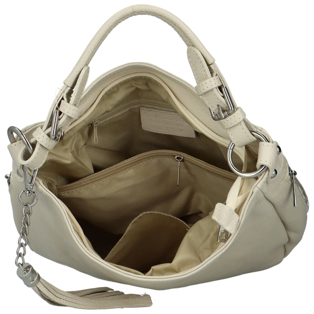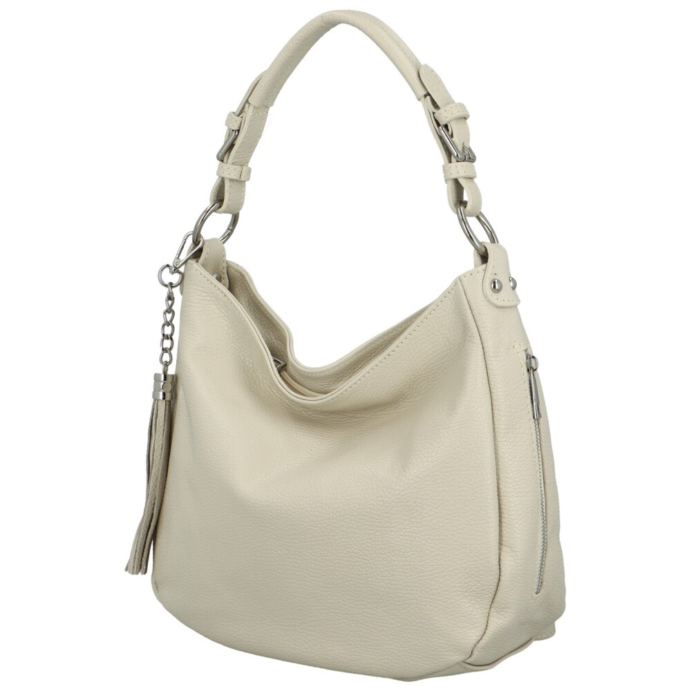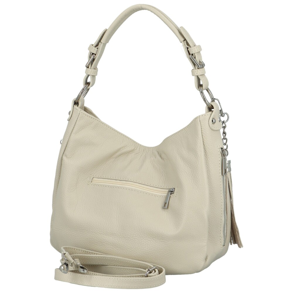 Dámska kožená kabelka cez rameno krémová - Delami Fineska