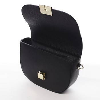 Chýba Vám doplnok, ktorý má iskru, ktorý Vám dokonale padne v takmer akejkoľvek situácii? Potrebujete vkusne a energicky oživiť svoj jarný či letný outfi? Obzeráte sa po akurátnom doplnku do mesta, do spoločnosti alebo na párty s priateľmi? Máme pre Vás pestrú ponuku kožených crossbody kabeliek, v ktorých sa rozhodne nájdete! Značka ItalY ponúka pevnú koženú kabelku, ktorá je menších rozmerov. Je zaoblená, má čiernu farbu a originalita s eleganciou jej rozhodne nechýba. Novinka! Objednajte ešte dnes a vyskúšajte! Vrátiť ju môžete až za 30 dní! Klopu kabelky otvoríte pomocou kovovej spony. Hlavné vrecko je na zips. Vnútri nájdete akurátny priestor pre osobné veci ako je peňaženka, telefón a kľúče, poprípade drobnosti. Kabelka disponuje dvoma celokoženými, odnímateľnými popruhmi. Jeden má fixnú dĺžku a je širší. Druhý popruh je užší a nastaviteľný.