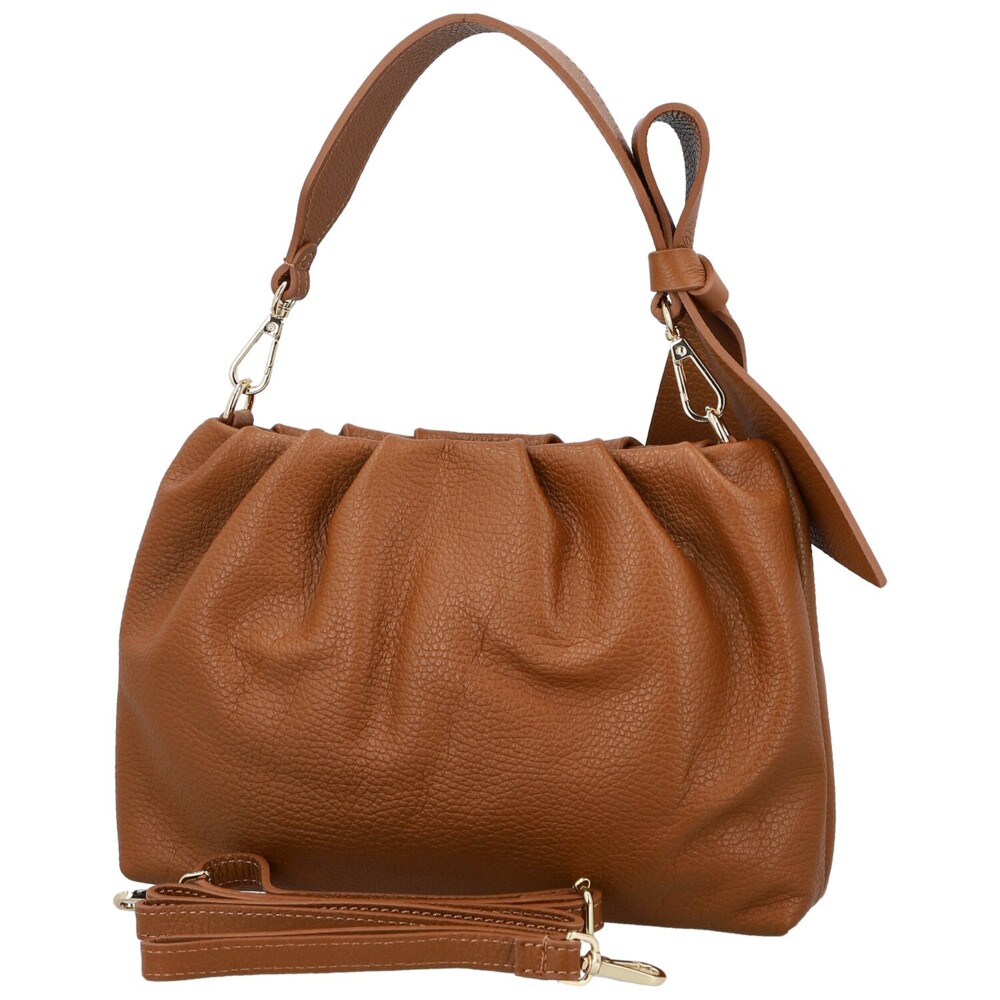 Dámska kožená kabelka do ruky koňaková - Delami Vera Pelle Elena