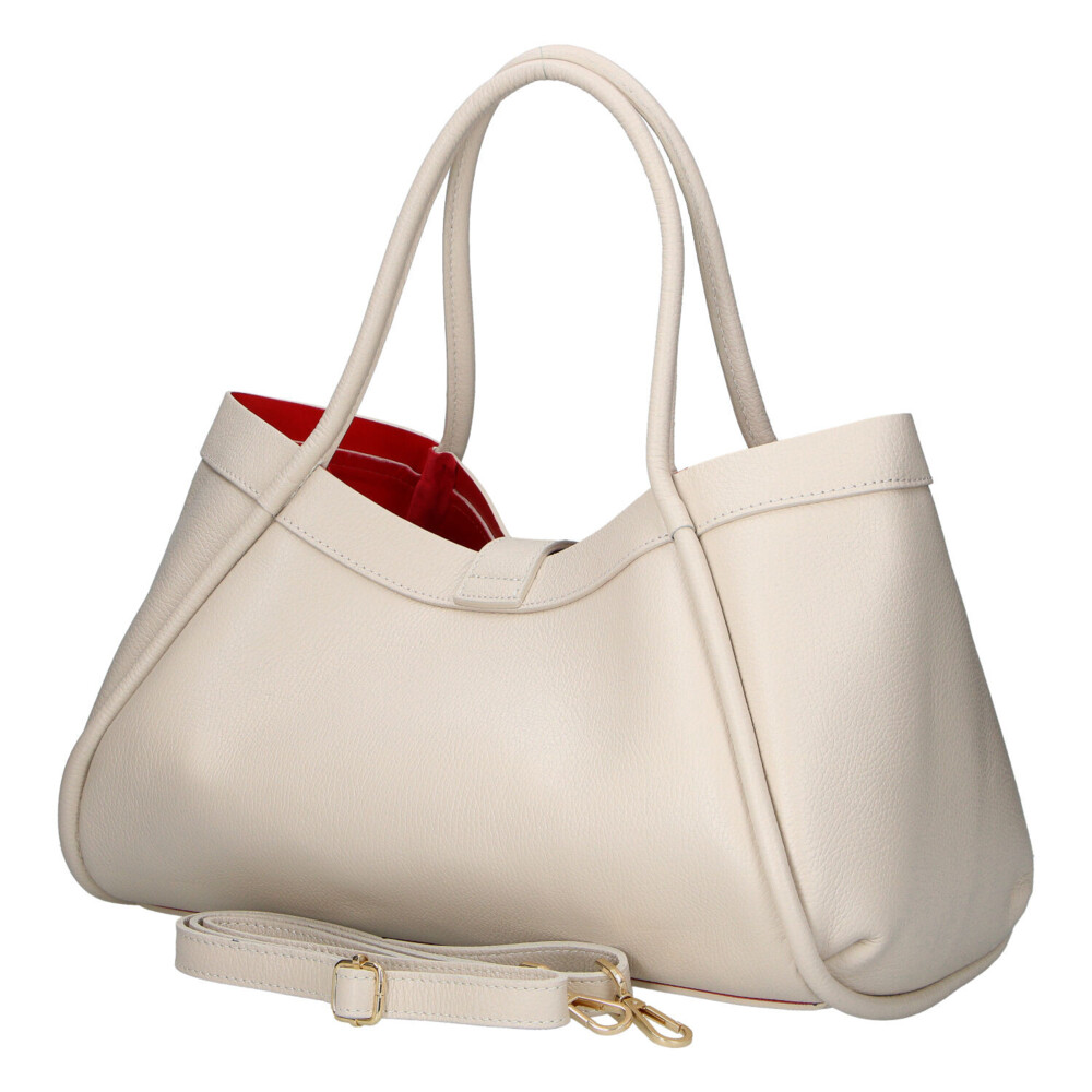 Dámska kožená kabelka do ruky krémová - Delami Vera Pelle Sabel