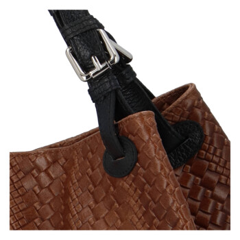 Kožená kabelka značky Delami Vera Pelle. Dizajnový kúsok k dámskemu outfitu, ale aj do mesta či práce. Dámska kožená taška, v krásnej kombinácii farieb a zaujímavom prevedení s prepletaním. Hlavný priestor je na cvok, vo vnútri veľké miesto rozdelené vreckom na zips. Nechýbajú vnútorné postranné priehradky na drobnosti či mobil. Uši sú pevné, kratšie do ruky s možnosťou nastavenia, dlhý popruh na nosenie na ramene je na pripnutie. Štýlová taška, pre váš každý deň. Tak objednajte ešte dnes a vyskúšajte, vrátiť ju môžete do 30 dní!