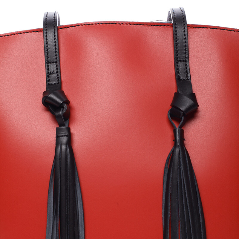 Dámska kožená kabelka na rameno červená/čierna - Delami Vera Pelle Juxeen