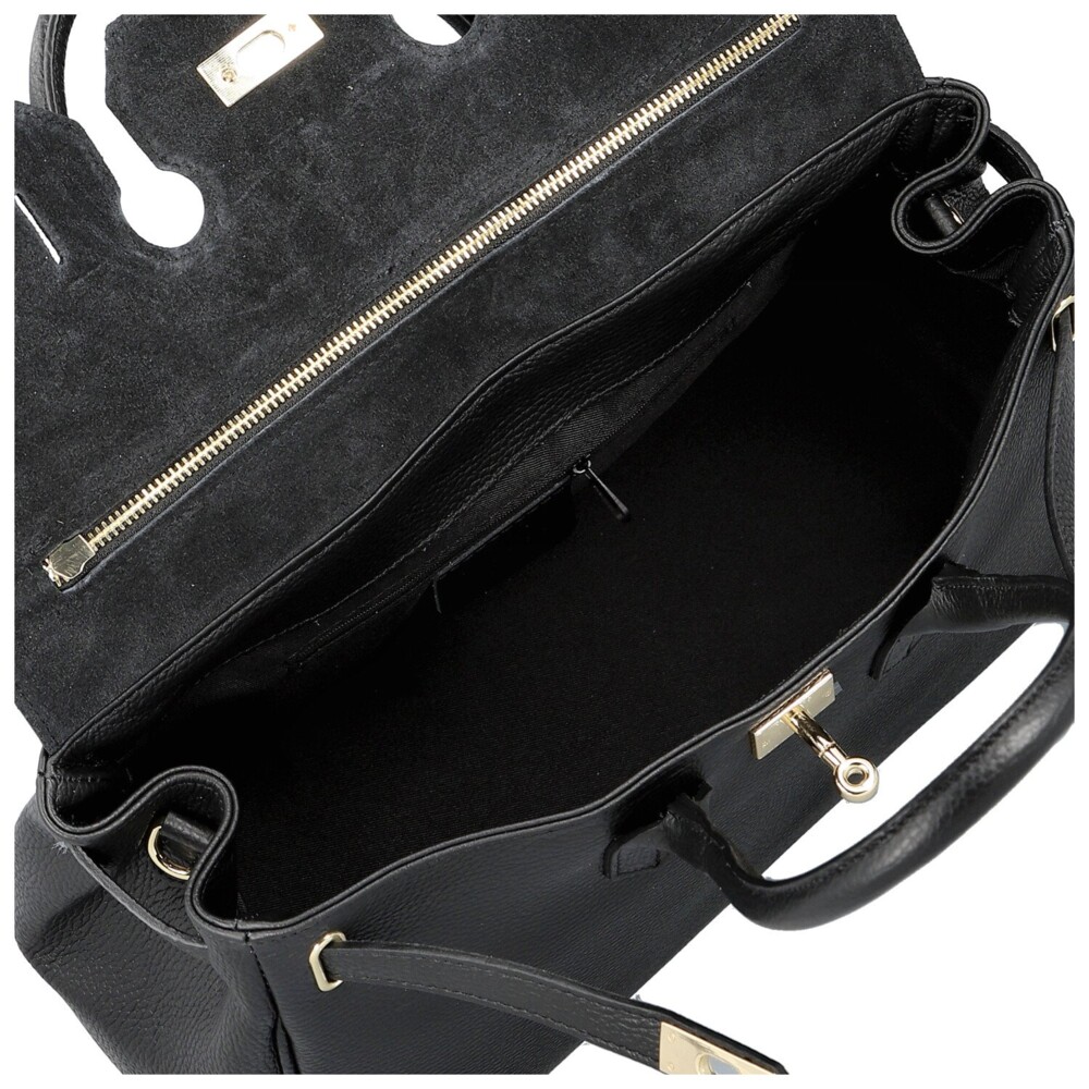 Elegantná dámska kožená kabelka, ktorá zaujme svojim premysleným designom aj nadčasovým šarmom. Vyrobená z kvalitnej, jemne zranenej kože si drží svoj tvar a pôsobí dokonale upravene v každej situácii. Prednú stranu zdobí klopa s ozdobným zlatým kaštieľom, ktorý kabelke dodáva noblesný vzhľad. Pod chlopňou sa ukrýva priestranný interiér s kapsičkami v podšívke pre prehľadné uloženie drobností. Kabelka má navyše praktický zips vo vrchnej časti, vďaka nemu sa do nej ľahko dostane aj bez nutnosti otvárať klopu. Pevné uši perfektne padnú do ruky a odnímateľný, nastaviteľný popruh umožňuje pohodlné nosenie cez rameno. Spodná časť chráni kovové nožičky proti poškriabaniu. Jemné zlaté detaily podčiarkujú celkový luxusný dojem a robia z tejto kabelky elegantného spoločníka pre každý deň. Objednajte ešte dnes a vyskúšajte, vrátiť ju môžete až za 30 dní!