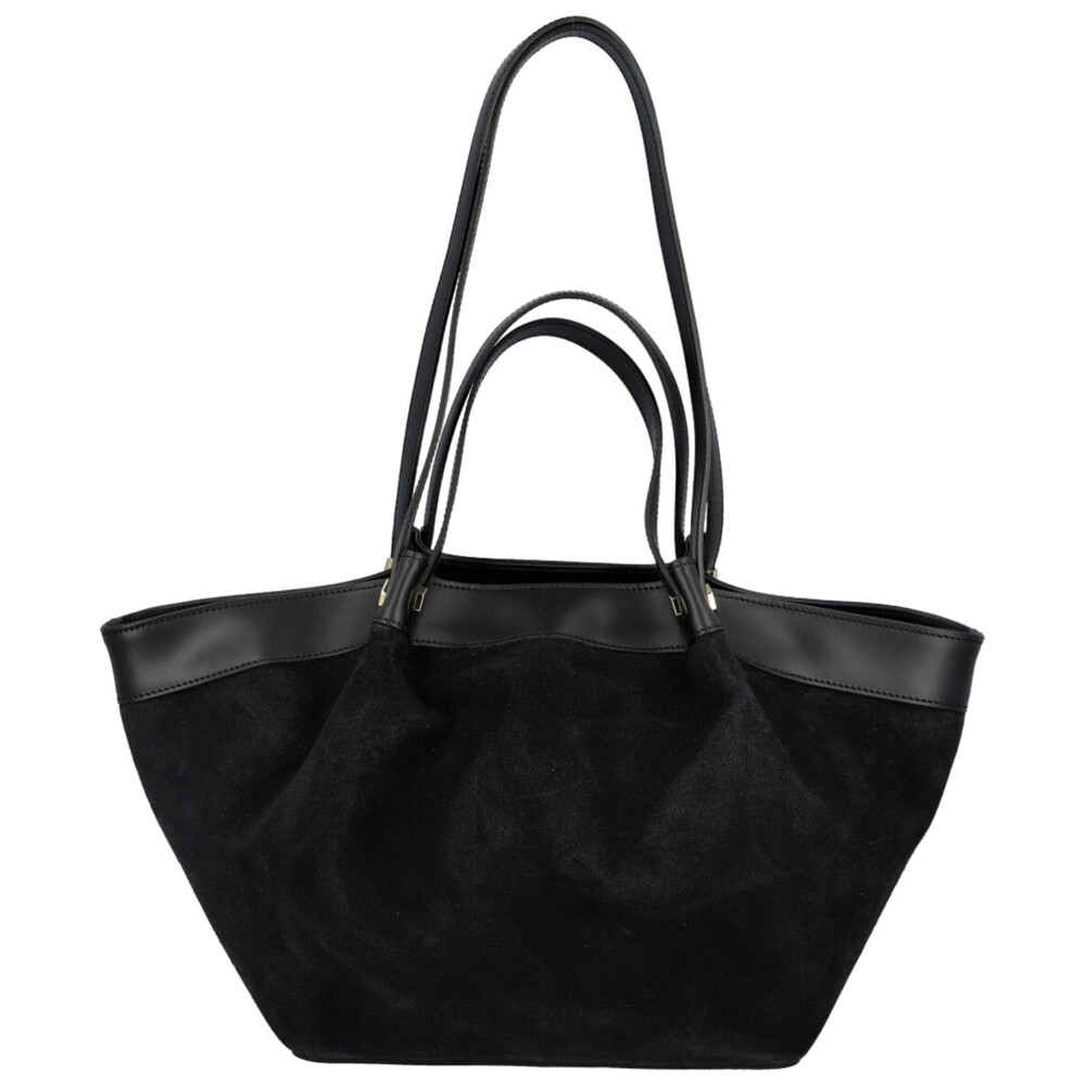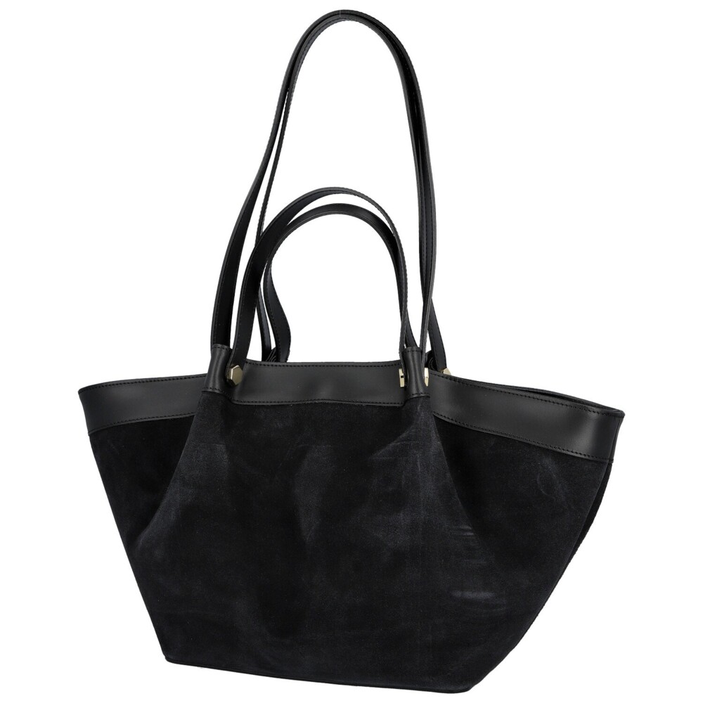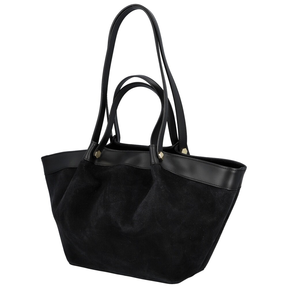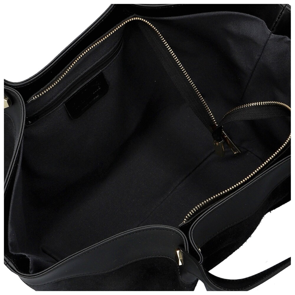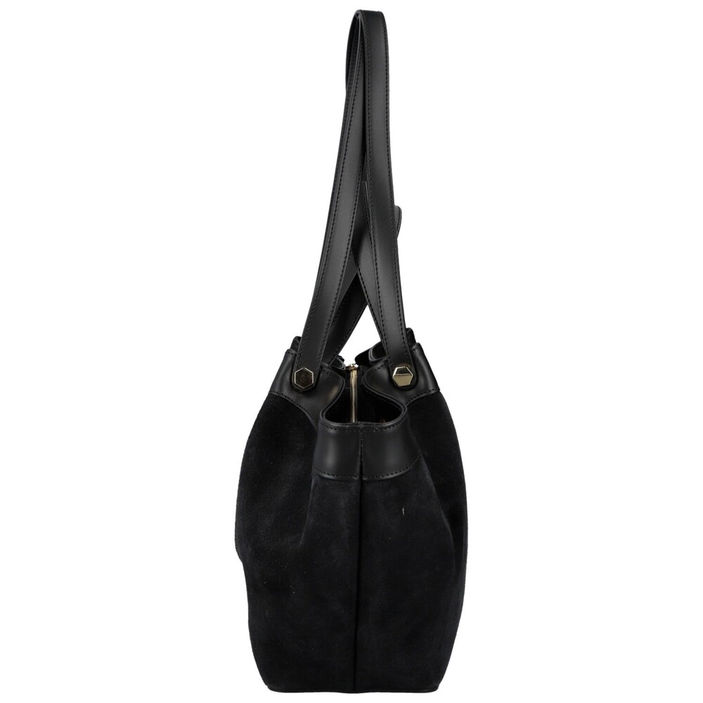 Štýlová dámska kabelka z pravej kože, ktorá zaujme na prvý pohľad svojim kombinovaným prevedením, mäkký brúsený povrch prechádza do hladkého koženého lemu. Čisté línie a precízne spracovanie podčiarkujú jej elegantný charakter. Kabelka má dvojitý typ uší, kratšie pre nosenie v ruke a dlhšie, ktoré sa pohodlne nosia cez rameno. Hlavné vrecko je uzatvárateľné zipsom a skrýva podšívku s praktickými vreckami na drobnosti. Drobné zlaté detaily dodávajú celkovému designu nádych luxusu. Dokonale doplní ako ležérny outfit, tak aj elegantný pracovný štýl. Objednajte ešte dnes a vyskúšajte, vrátiť ju môžete do 30 dní!