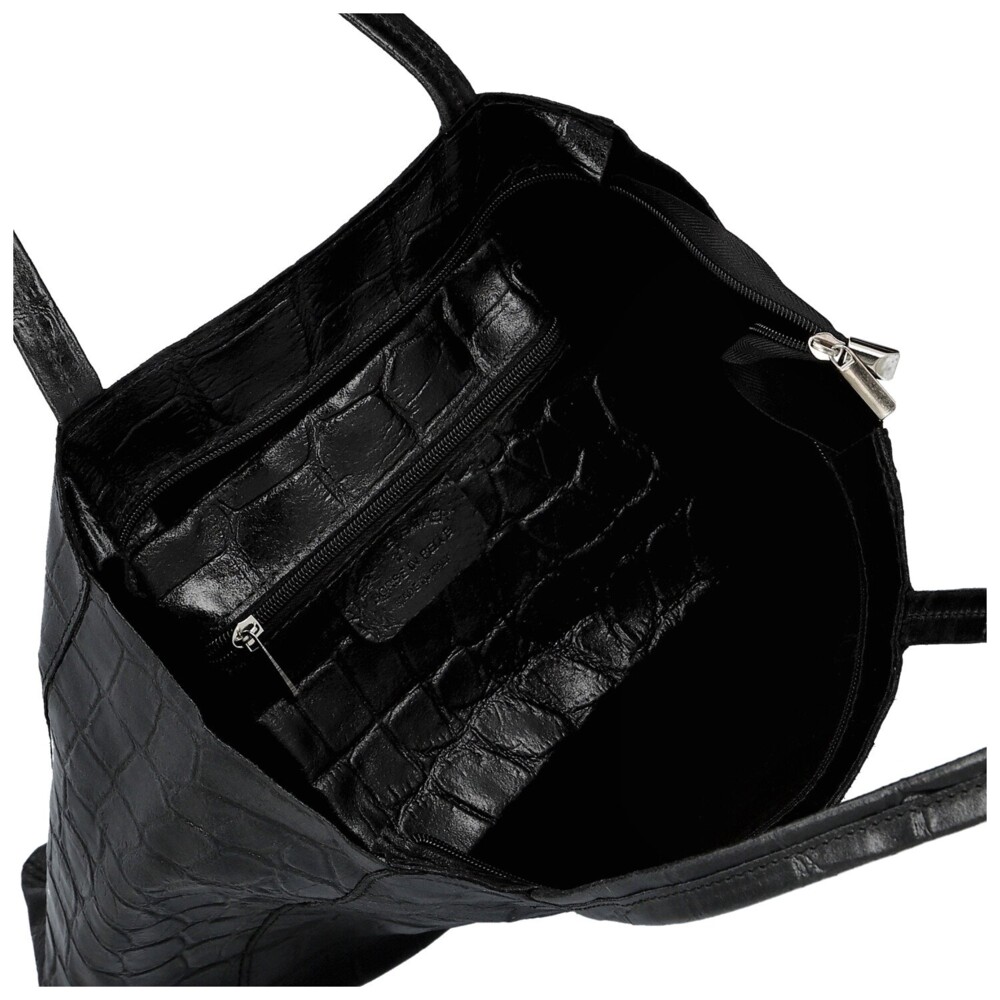 Táto priestranná kožená kabelka vyniká nadčasovým designom a precíznym spracovaním. Povrch z pravej kože s výrazným krokodílím reliéfom pôsobí luxusne a zároveň originálne. Kabelka má pevný tvar, takže si udrží elegantnú líniu aj pri plnom naplnení. Dlhé, pohodlné uši umožňujú nosenie na ramene aj v ruke. Hlavný priestor je uzatvárateľný na zips a vo vnútri sa nachádza praktické zipsové vrecko na cennosti či drobnosti. Je to dokonalý doplnok pre ženy, ktoré ocenia spojenie štýlu, kvality a funkčnosti – ideálne do práce. mesta aj na voľný čas. Objednajte ešte dnes a vyskúšajte, vrátiť ju môžete až za 30 dní!