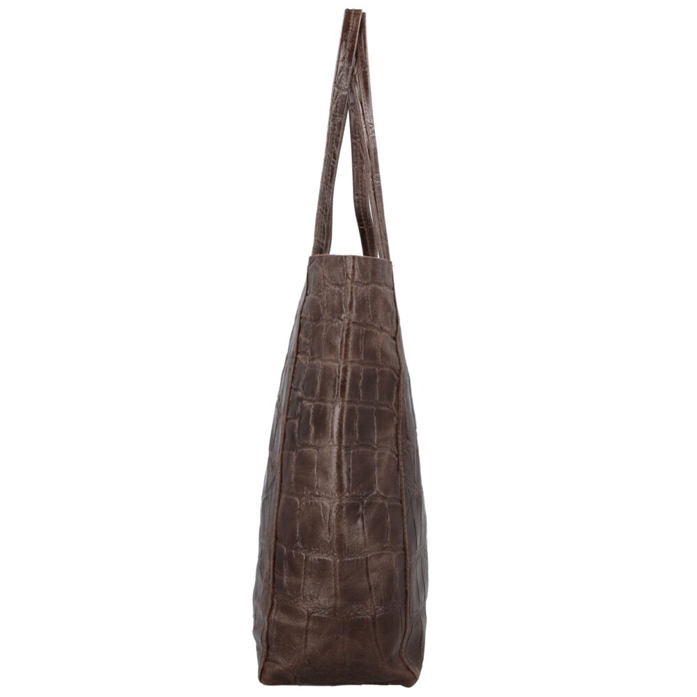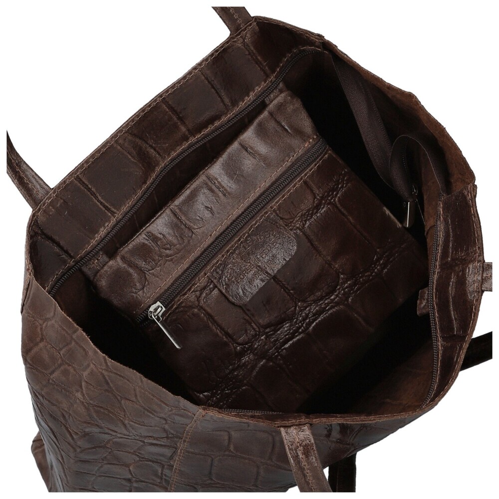 Táto priestranná kožená kabelka vyniká nadčasovým designom a precíznym spracovaním. Povrch z pravej kože s výrazným krokodílím reliéfom pôsobí luxusne a zároveň originálne. Kabelka má pevný tvar, takže si udrží elegantnú líniu aj pri plnom naplnení. Dlhé, pohodlné uši umožňujú nosenie na ramene aj v ruke. Hlavný priestor je uzatvárateľný na zips a vo vnútri sa nachádza praktické zipsové vrecko na cennosti či drobnosti. Je to dokonalý doplnok pre ženy, ktoré ocenia spojenie štýlu, kvality a funkčnosti – ideálne do práce. mesta aj na voľný čas. Objednajte ešte dnes a vyskúšajte, vrátiť ju môžete až za 30 dní!