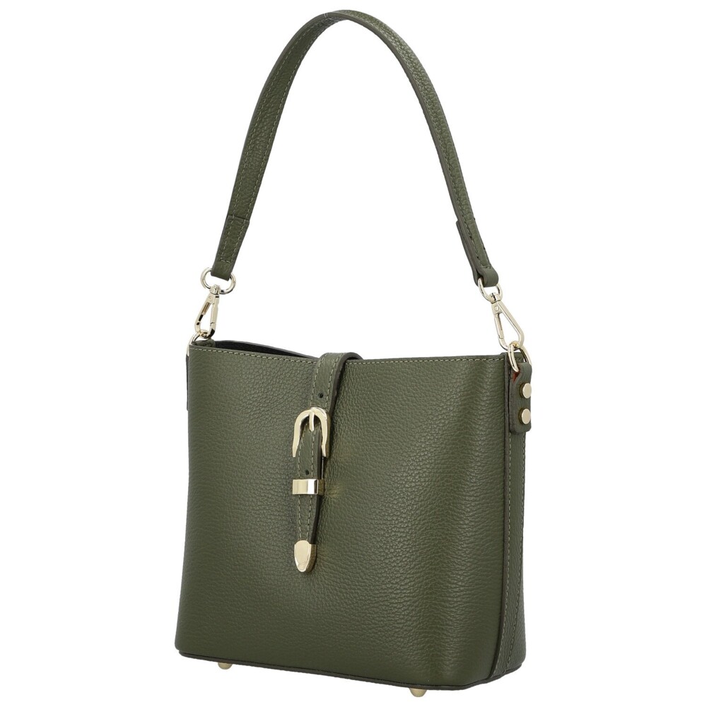 Dámska kožená kabelka na rameno tmavo zelená - Delami Vera Pelle Antoanet