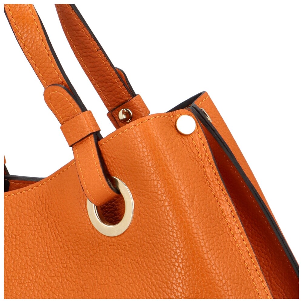 Ak zháňate luxusnú kabelku do mesta i do spoločnosti, potom vám nesmie uniknúť táto krásna kožená kabelka do ruky aj cez plece, od značky Delami! Kabelka má oranžovú farbu, je stredne veľká a pevnejšia s mäkšími stenami. Spodná strana je vybavená kovovými cvočkami, čo jej dodáva stabilitu a pri odkladaní sa nezašpiní. Ponúkne vám skvelý priestor pre osobné či ďalšie veci a doplnky. Hlavné vrecko sa otvára zipsom a po stranách sú vrecká na magnet. Objednajte ešte dnes a vyskúšajte! Vrátiť ju môžete až za 30 dní!