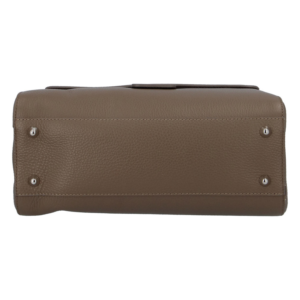 Luxusná kožená kabelka od značky ItalY. Objednajte ešte dnes a vyskúšajte! Vrátiť ju môžete až za 30 dní! Elegantný model taupe kabelky Vás skvele doplní v spoločnosti aj v meste. Nosiť ju možno v ruke, na predlaktí aj cez plece. Dámska kabelka je stredných rozmerov, klopa kabelky sa otvára dvoma magnetickými cvokmi. Je mäkšia, ale dobre drží svoj tvar, má pevnejšie dno a na spodnej strane sú kovové cvočky. Hlavné vrecko sa otvára zipsom. Chýba tu vrecko so zipsom na zadnej strane.