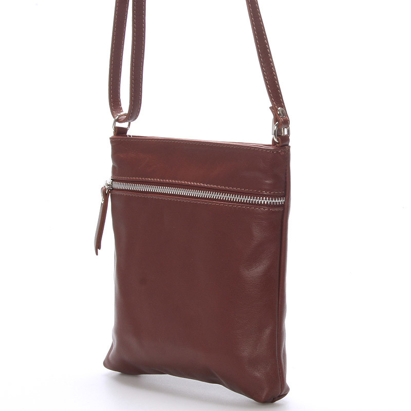 Dámska menšie tmavo hnedá kožená kabelka cez rameno - ItalY Slania