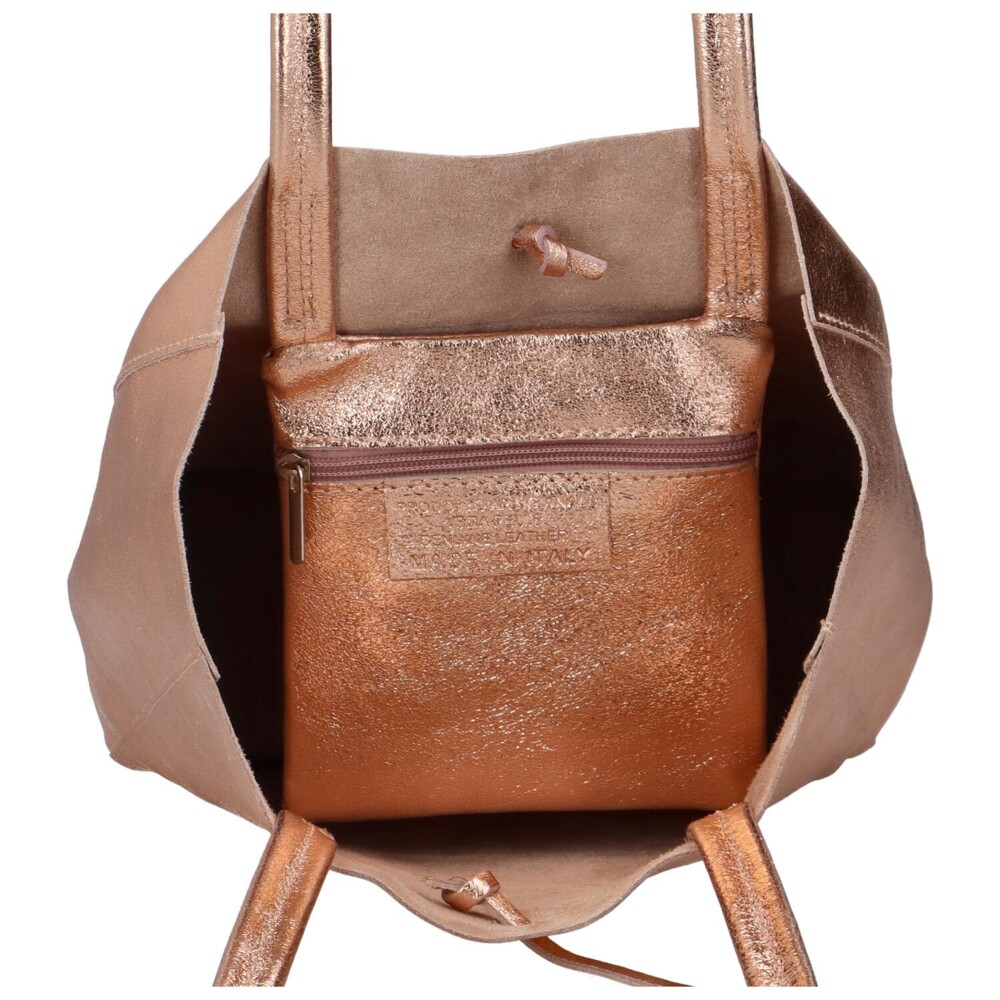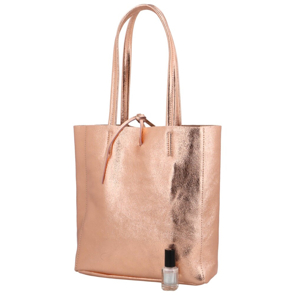 Dámska ružovo zlatá kožená kabelka cez rameno - ItalY Noox Lami Two